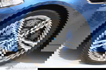 Las preciosas llantas opcionales de 20” dejan entrever unos enormes discos de freno perforados con las pinzas pintadas en azul. Bajo mi punto de vista, conjuga a la perfección la elegancia de una berlina pero con detalles que te están diciendo que es el más brutal de toda la gama. Al verlo en directo, impresiona y casi enamora.