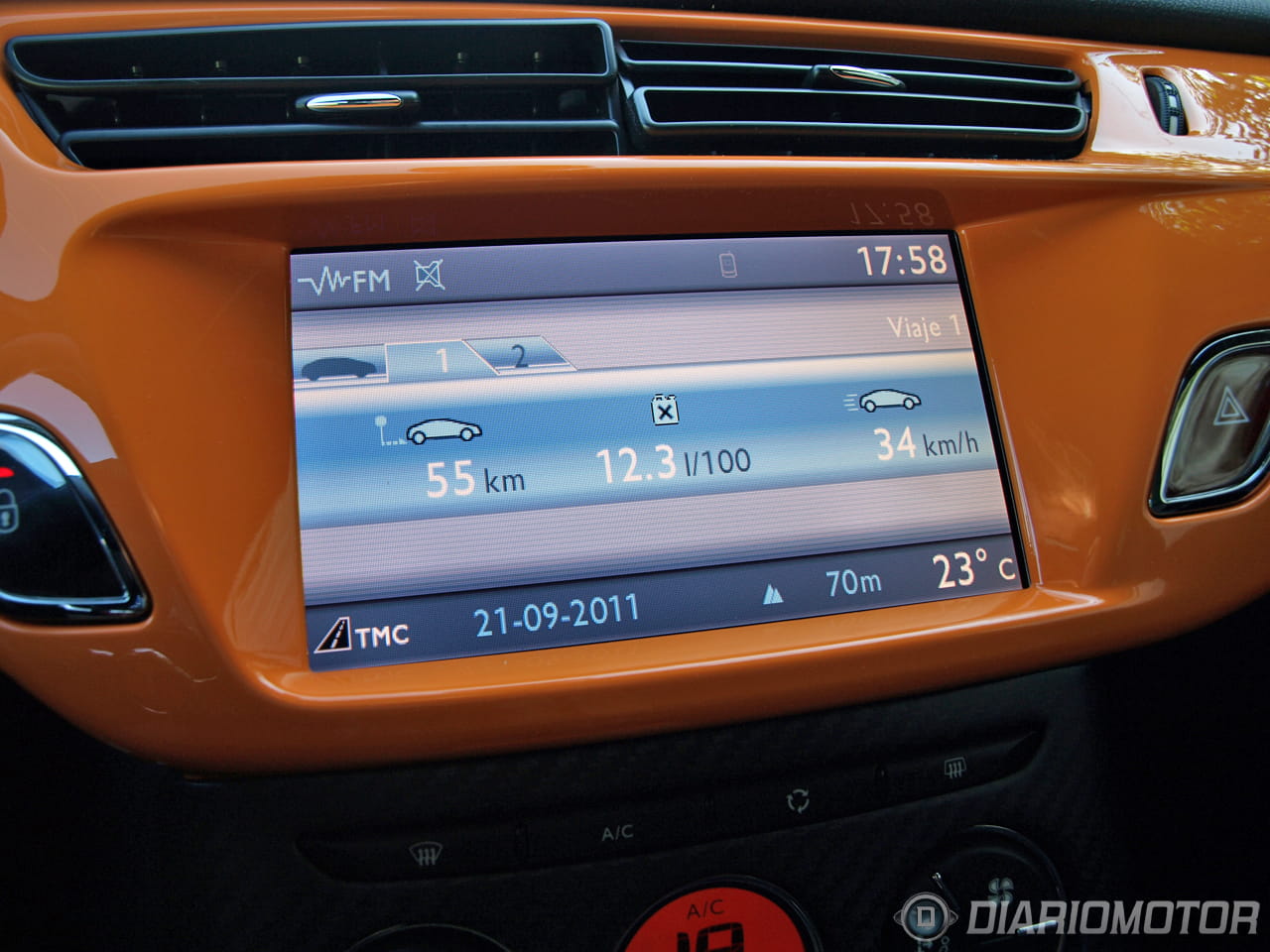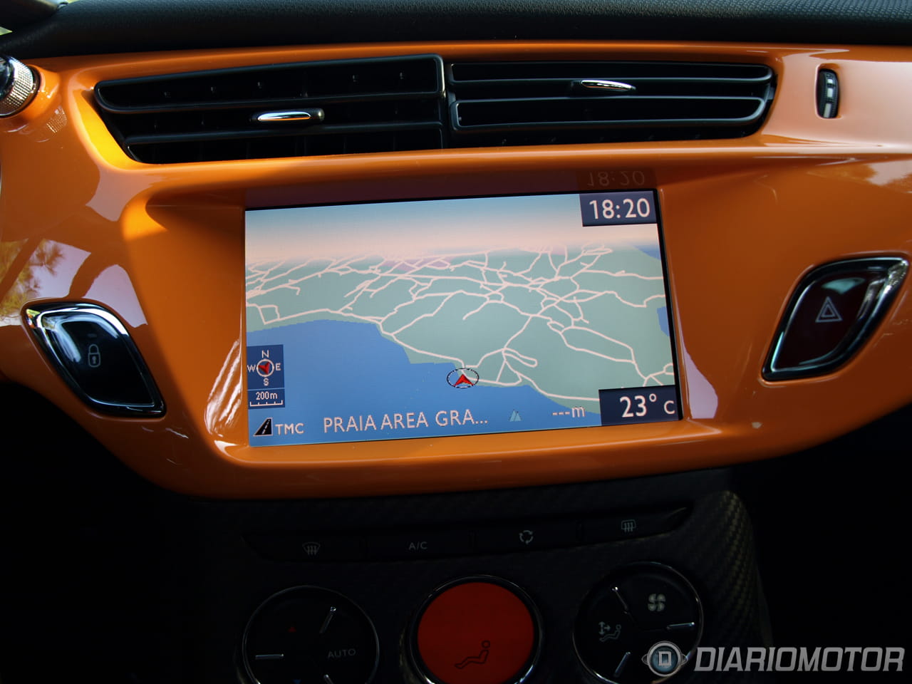Como otros DS3 el DS3 Racing incorpora el navegador GPS con una gran pantalla de color en el centro del salpicadero. Lo malo, que no es una pantalla táctil y que debe manejarse con los dos botones giratorios de la radio. Lo bueno, que tiene una gran claridad y que permite bien un buen fragmento del mapa lo cual es estupendo si uno se quiere orientar sin ruta preestablecida.