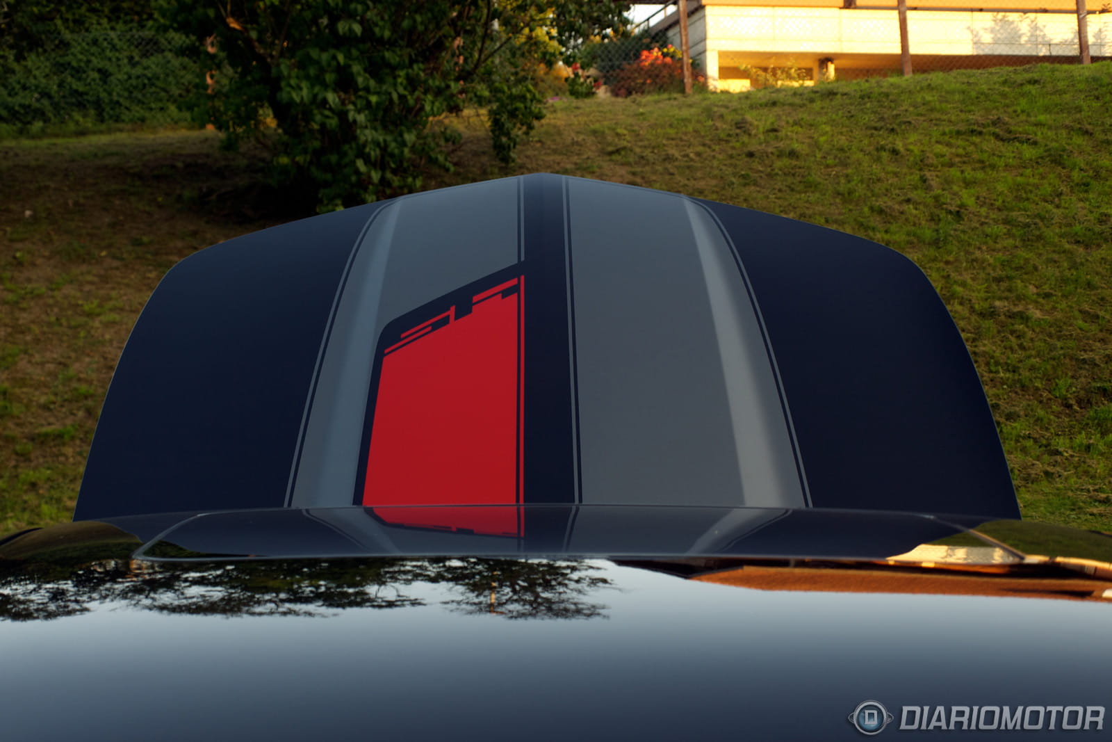 Además, la musculatura que rezuma por toda su carrocería le dan ese toque entre siniestro y atractivo que solo algunos coches pueden alcanzar. Como por arte de magia, la única unidad que quedaba libre en carrocería coupé y cambio manual cuando fui a recoger las llaves era el que véis en la imagen superior, el Chevrolet Camaro 45th Anniversary Special Edition, una edición especial conmemorativa de sus 45 años (1967-2012), que en España se venderá como un paquete opcional, con un coste extra de 2.000 euros.