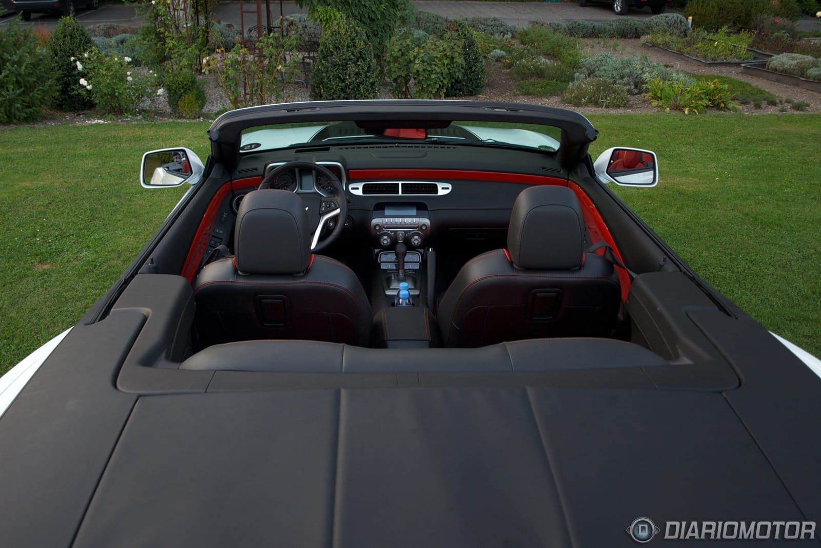 En una de esas geniales ideas que se te pasan por la cabeza, decidí hacer las fotos al interior de un Chevrolet Camaro Convertible por temas de iluminación y facilidad de encuadre, sin caer en la cuenta que el interior de la edición especial del 45 aniversario es ligeramente diferente y cuenta con ciertos detalles exclusivos que no están en el acabado normal. Cuando la emoción pasó a un segundo plano y recuperé la cordura, era demasiado tarde. Os lo puedo contar, pero no es lo mismo verlo que contarlo. Mil disculpas.