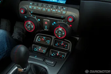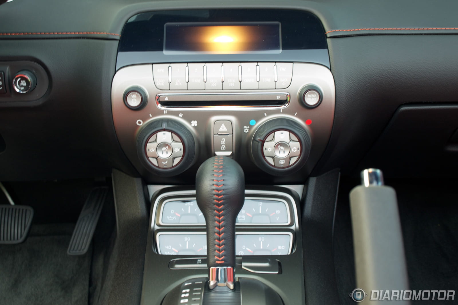 Aún así, lo que os puedo contar de su interior vale para ambas versiones. Como la llegada a Europa está marcada por la exclusividad de la versión con el motor LS3 V8 6.2, lo que nos encontraremos al abrir la puerta es el interior del Chevrolet Camaro SS, como se conoce a este acabado en Estaods Unidos. Cuero de muy buena calidad en los asientos, detalles clásicos como los relojes frente al cambio de marchas e iluminación en rojo y azul para los diferentes botones del salpicadero.