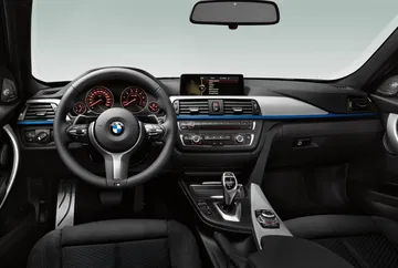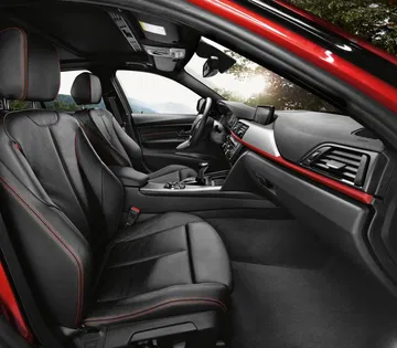 El interior del acabado sport destaca la tapicería con contrastes en rojo o gris, asientos delanteros deportivos opcionales, inserciones de aluminio de BMW Sport, detalles en negro brillante, volante deportivo e instrumentación específica.