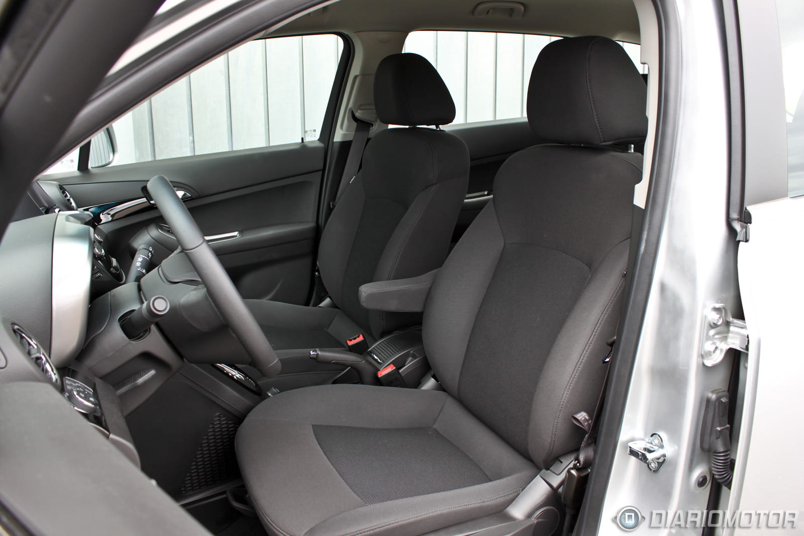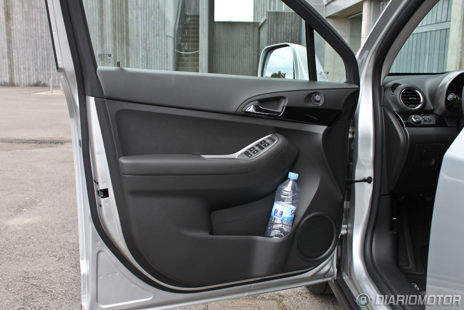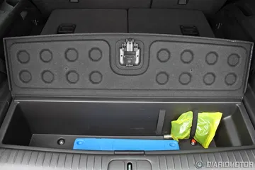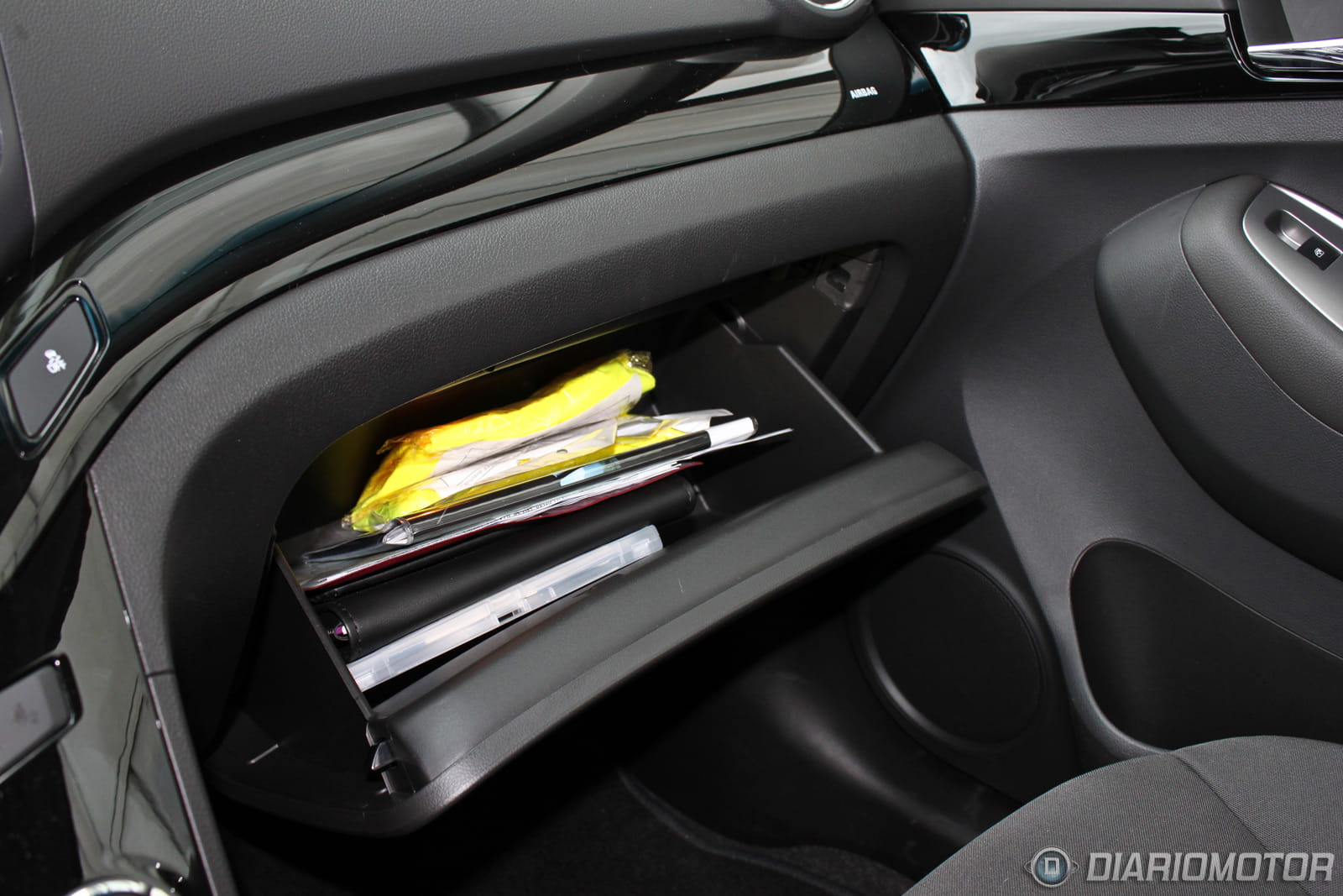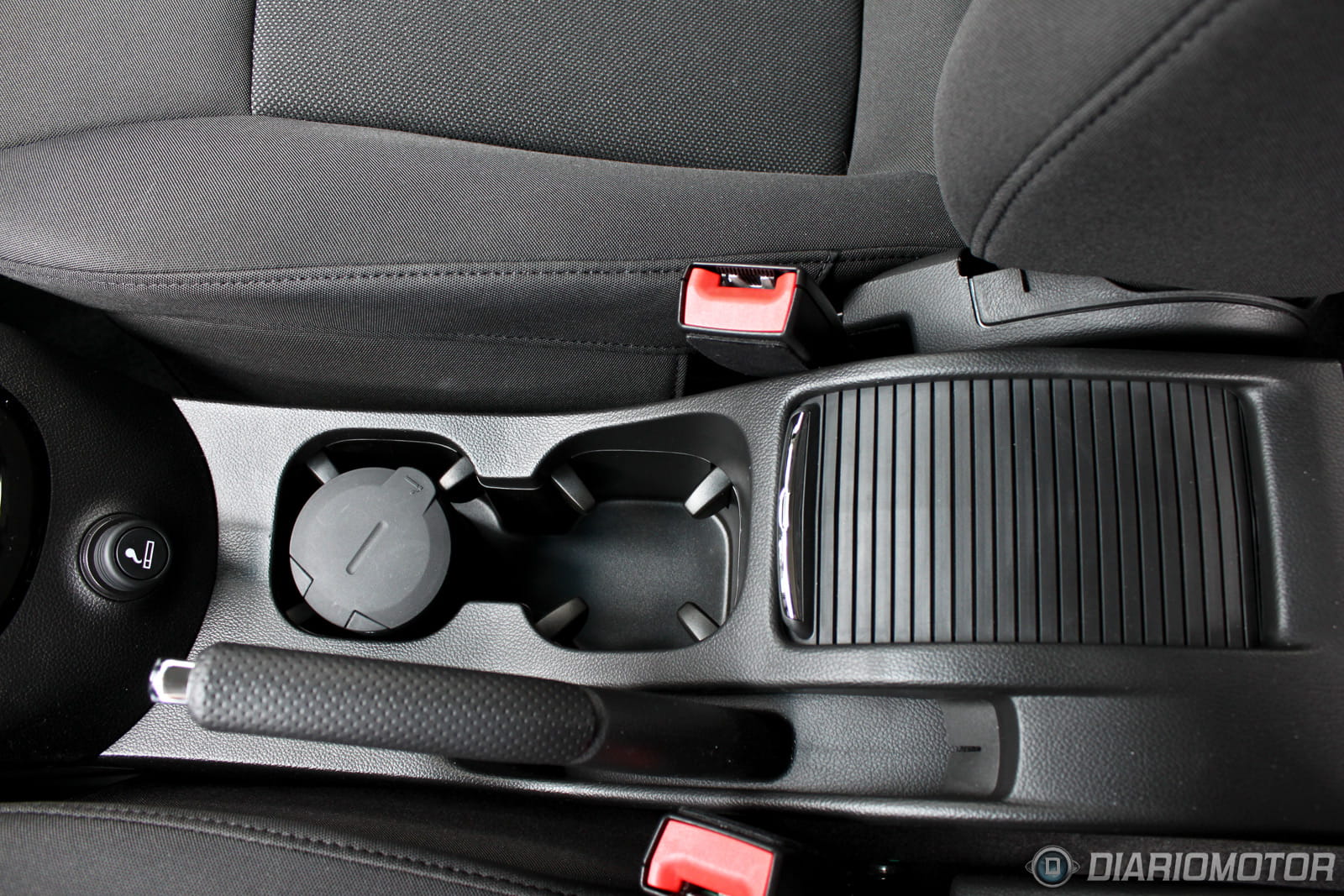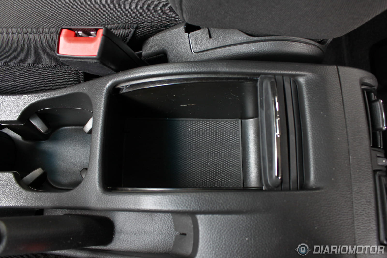 Es un espacio ideal del que ningún ladrón tendrá constancia, realmente es un punto muy a destacar. Por lo demás, en las puertas gozamos de hueco para grandes botellas y entre los asientos hay hueco para dos latas o botellas, además de un hueco con tapa deslizante de tamaño medio. La guantera es pequeña y está iluminada, pero no tapizada. Sólo el conductor dispone de reposabrazos en su asiento. Sólo hay un punto de iluminación interior, sobre las plazas centrales.
