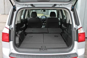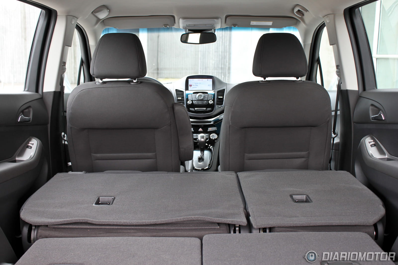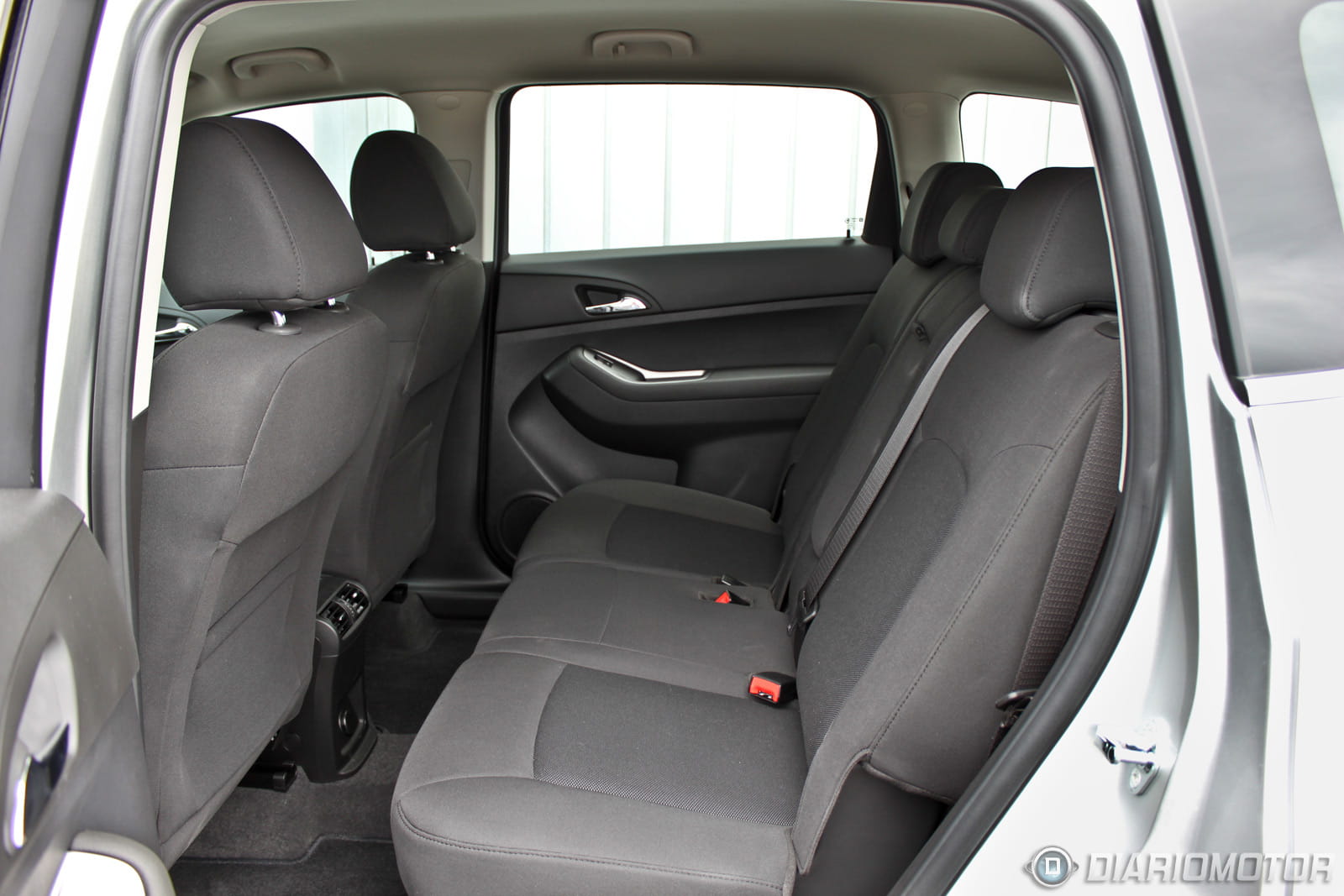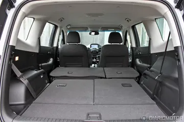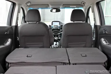 Una peculiaridad con respecto a otros monovolúmenes del segmento es que la fila central de asientos no tiene posibilidad de desplazamiento longitudinal. Es suficientemente ancha para tres adultos, pero no es demasiado espaciosa a nivel de rodillas. Hay dos anclajes ISOFIX para sillitas, uno en cada una de las plazas laterales. El respaldo sí es regulable en inclinación. Los asientos delanteros no cuentan con mesas tipo avión en su respaldo, en las puertas sigue cabiendo una botella grande de 1,5 litros.