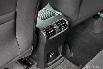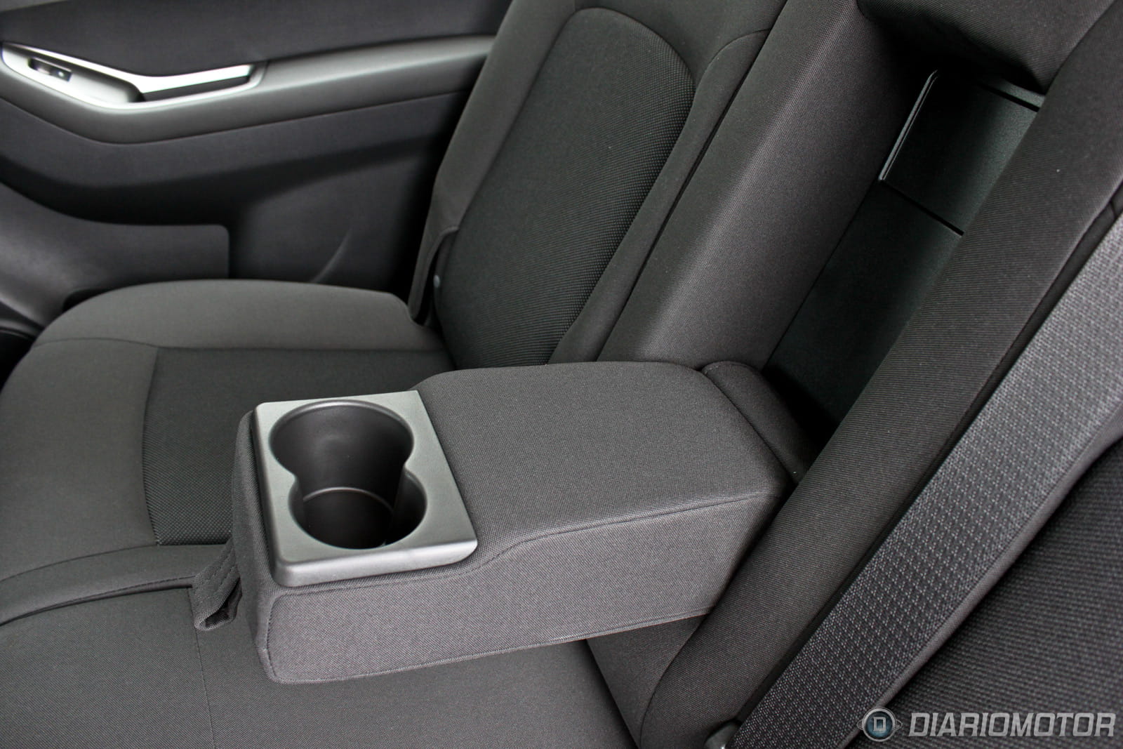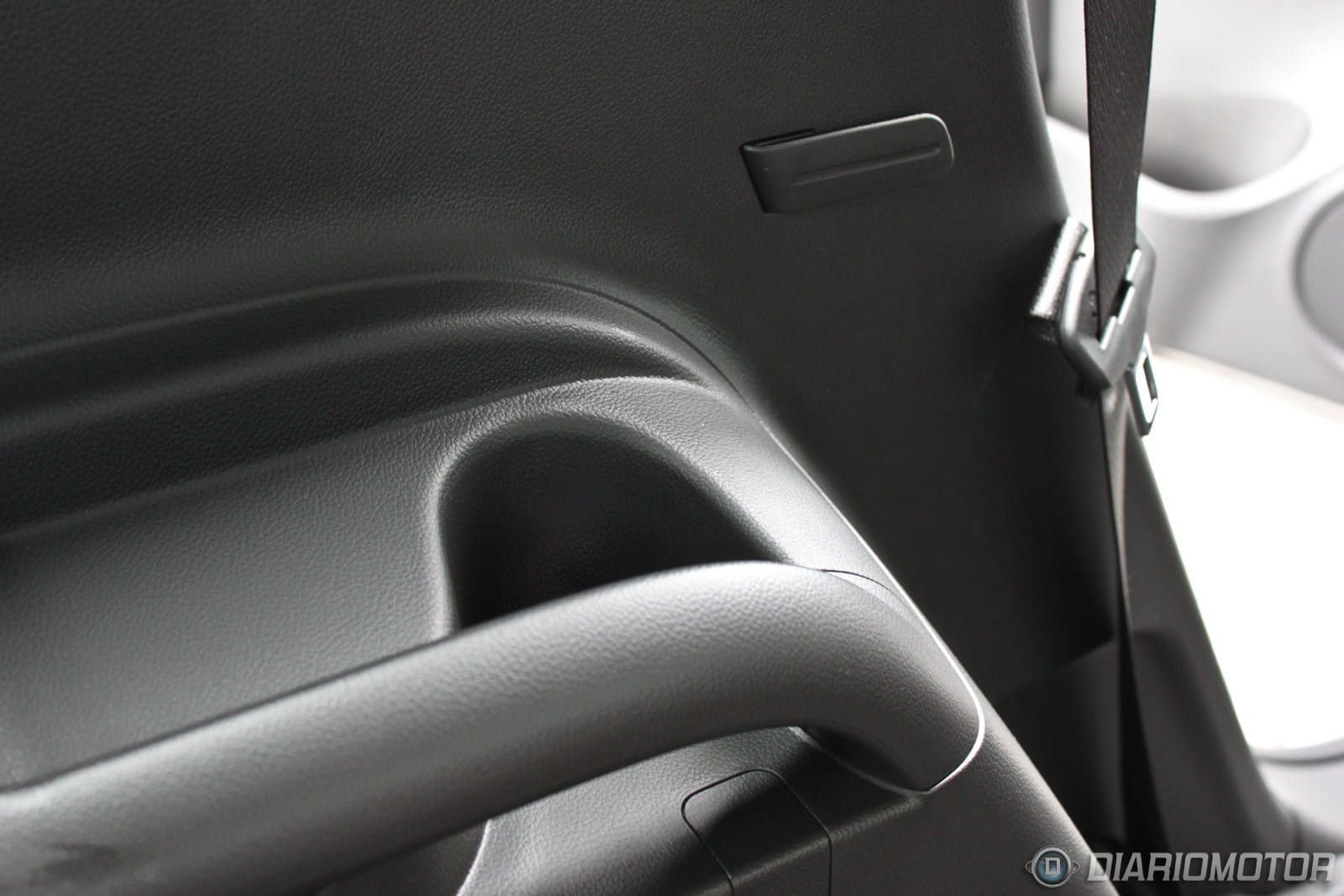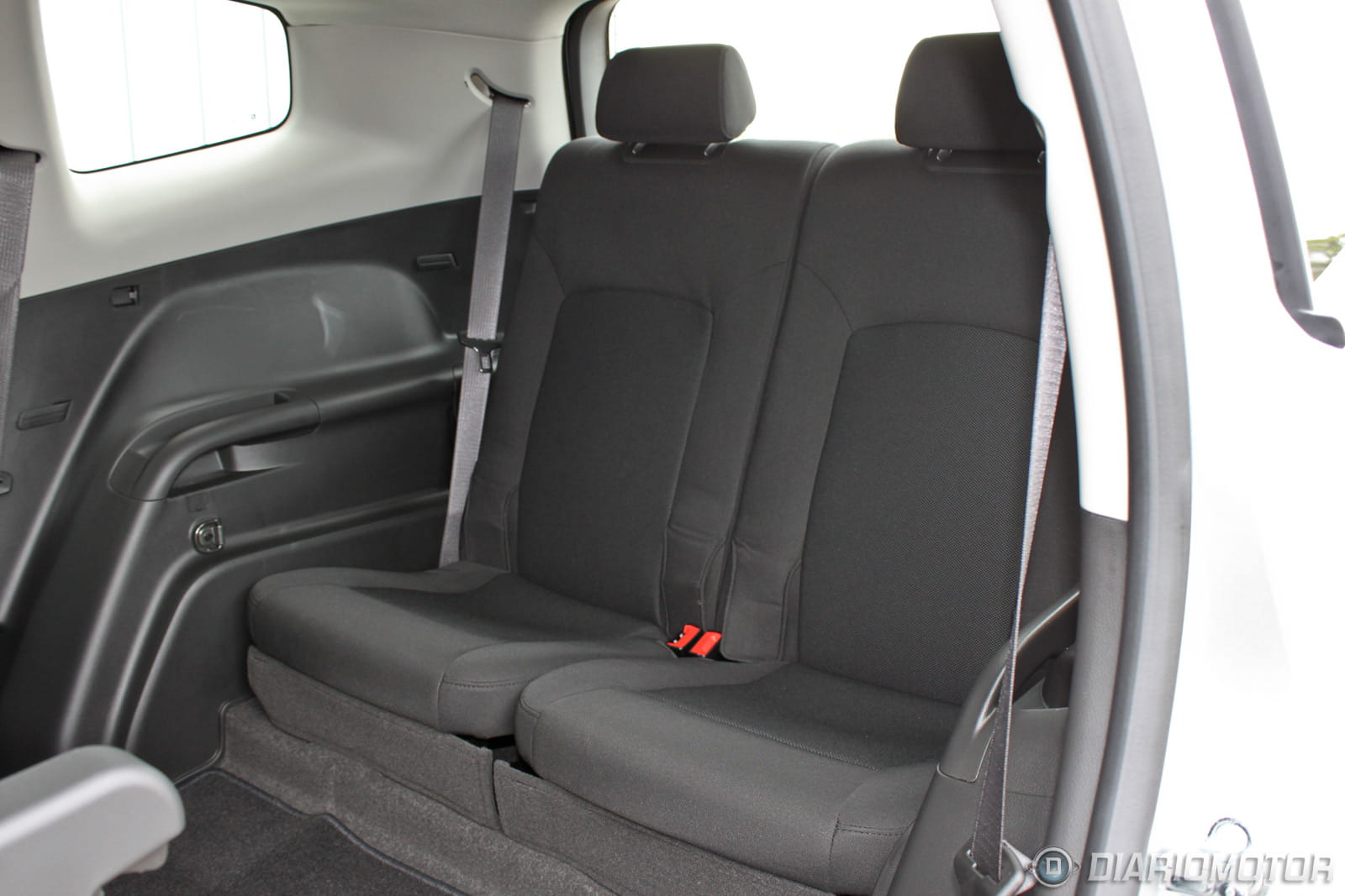 Hay un reposabrazos central con portabebidas que hace la experiencia del pasajero central algo más incómoda por la dureza del respaldo. El acceso a la tercer fila de asientos es muy sencillo, una vez está en posición. Normalmente el coche va en configuración de cinco plazas. Para levantar la tercera fila, desde el maletero tiraremos hacia nosotros del respaldo de estos dos asientos con la ayuda de un tirador de plástico. Es un proceso muy sencillo que puede llevarnos un total de diez segundos a lo sumo.