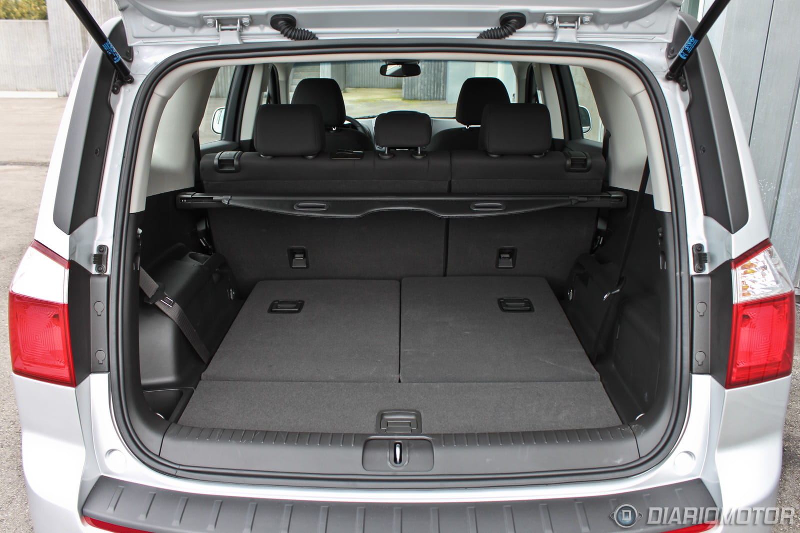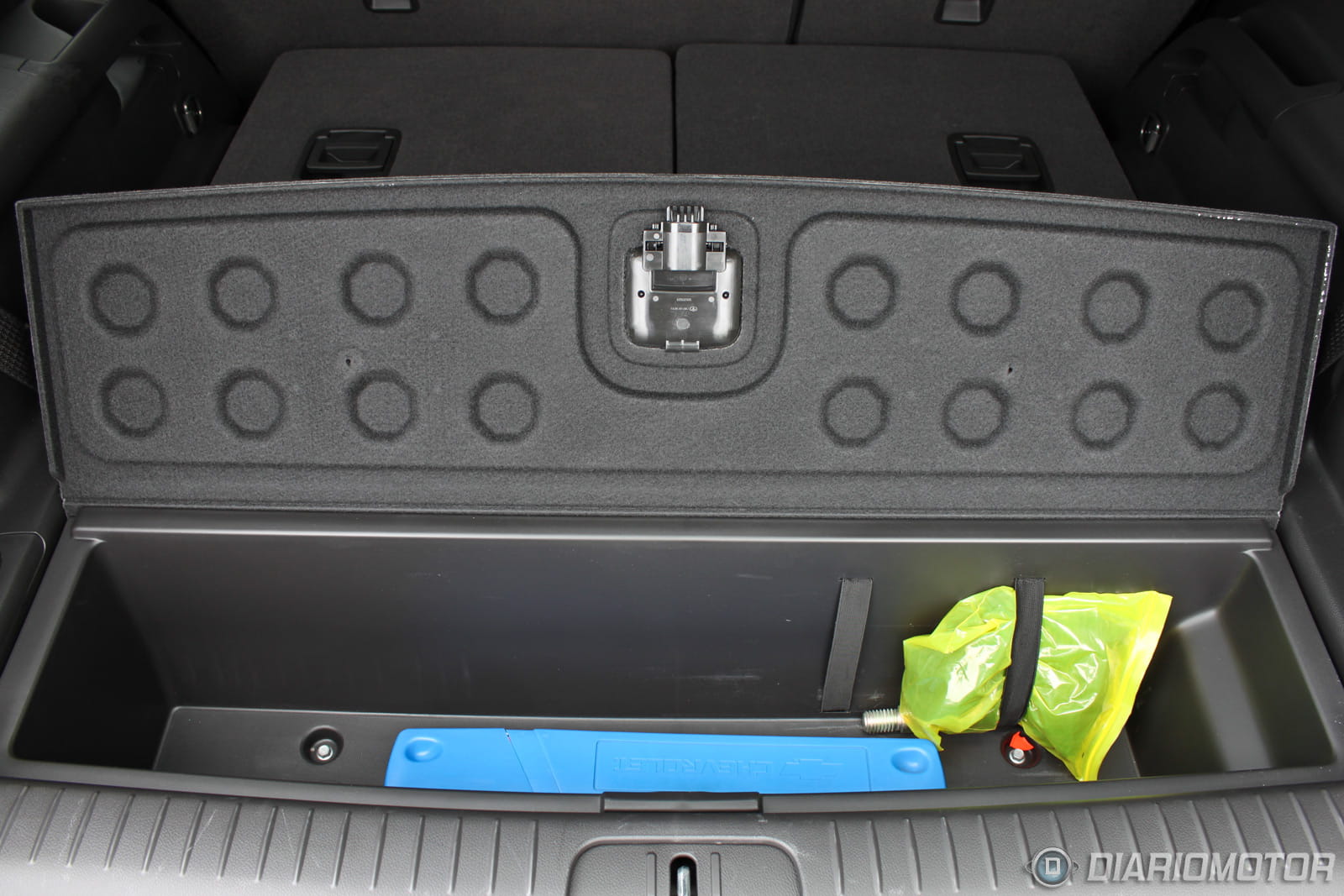 El maletero del Chevrolet Orlando no destaca entre los vehículos del segmento. Tiene 460 litros de formas perfectamente regulares con la tercera fila abatida, lo que es superado por vehículos como los Renault Scénic. No obstante, la boca de carga es baja y la carga/descarga de bultos es sencilla. Tiene una cubeta a la izquierda para objetos pequeños y una pequeña tapa cerca del portón bajo la que podemos disfrutar de unos 50 litros adicionales, lo que siempre es una ayuda.