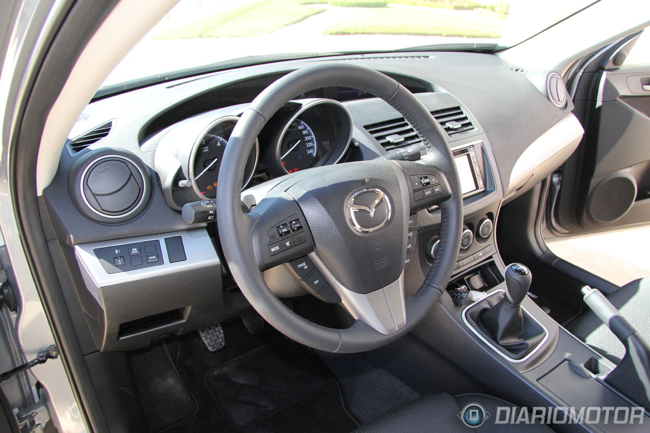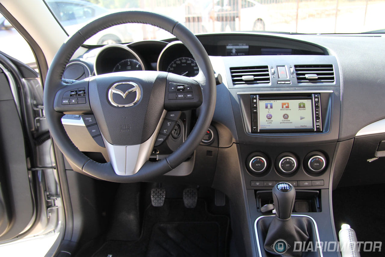 Mazda le pone la mano a varias tapicerías y dice mejorar los materiales que forman las partes tangibles del interior. Aparentemente esas mejoras son discretas pero se aprecian al poner la mano sobre el volante o acariciar el pomo de la palanca de cambios. Otros detalles plásticos como los botones del propio volante o de la radio siguen teniendo un tacto bastante mejorable.