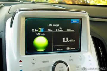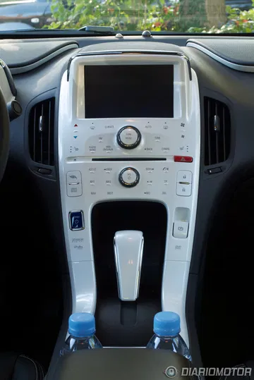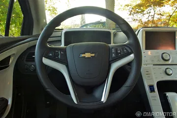 Cuando te sientas al volante del Chevrolet Volt te das cuenta al segundo que estás en un coche cargado de tecnología. Sus dos pantallas de siete pulgadas dan buena cuenta de ello, por nombrar un ejemplo claro. Otro detalle significativo lo encontramos en la consola central, en la que se hace uso del mismo plastiquete que en el Chevrolet Camaro pero con una función diferente, en el Chevrolet Volt hace las veces de pantalla táctil para todos los botones (o casi todos).