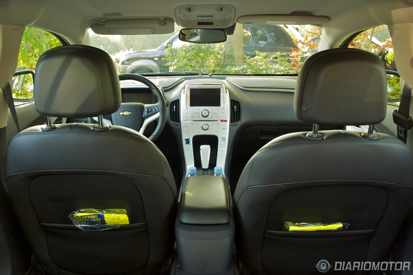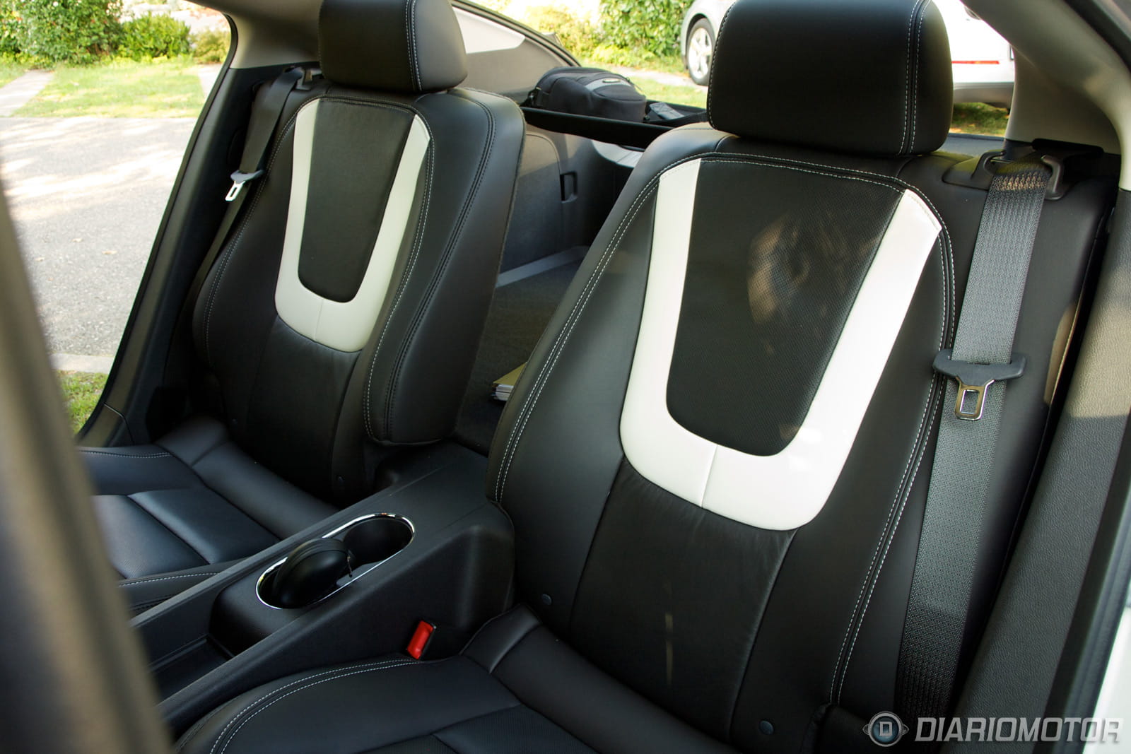 Pero también tiene otros detalles menos agradables. Pero vayamos primero a lo general. El Chevrolet Volt es un cuatro plazas sin opción a una quinta plaza. De hecho, los asientos traseros son individuales y son casi calcados a los delanteros, por lo que viajar en las plazas traseras es casi igual de cómodo que en las delanteras. Son asientos de cuero, con un tacto agradable y que sujetan bien el cuerpo dada su forma, aunque el Chevrolet Volt no esté pensado para ir de tramo, pero se agradece.