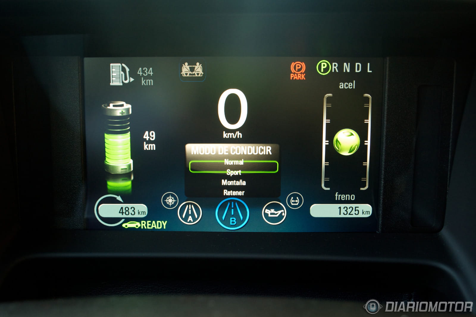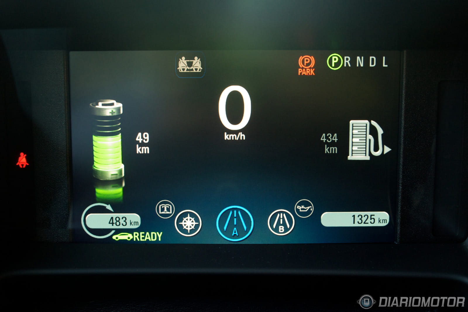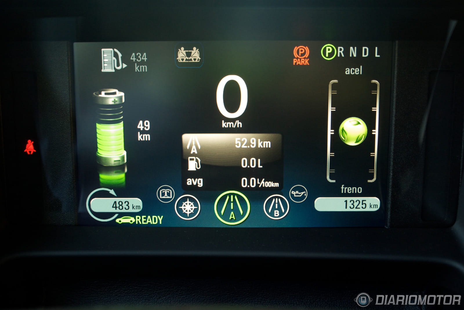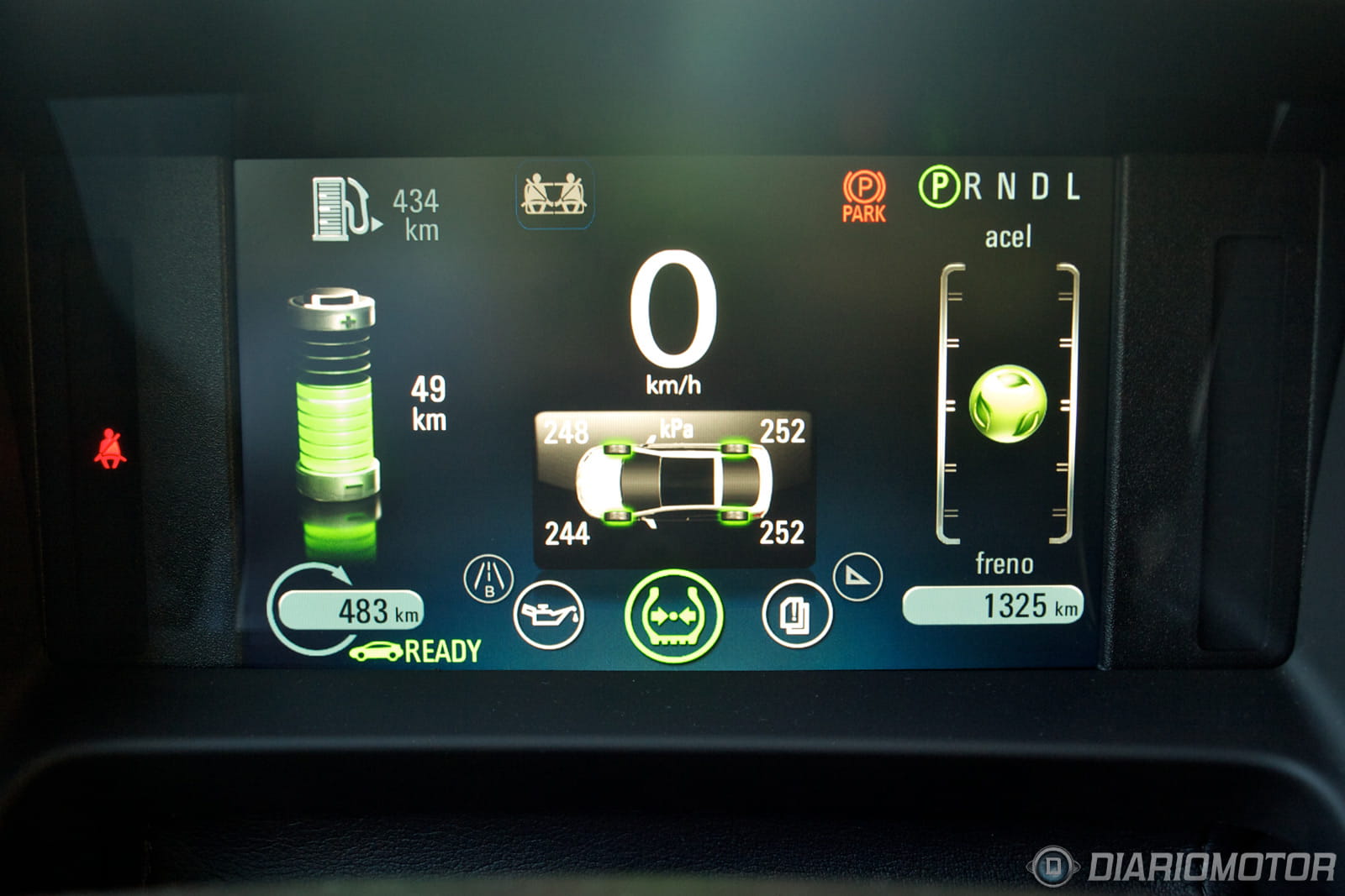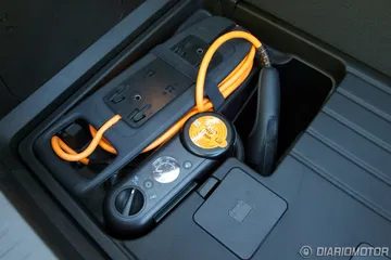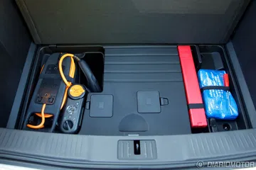 El maletero es de 310 litros con los asientos traseros en su posición o de 1.005 litros con los asientos traseros abatidos. No es una medida para tirar cohetes, pero no tiene formas extrañas que empeoren su capacidad. Eso sí, la boca del portón queda un poco alta respecto al piso del maletero. Un piso que se levanta y nos deja ver el kit antipinchazos (no le cabe una rueda de repuesto por las baterías) y el kit de carga portátil.