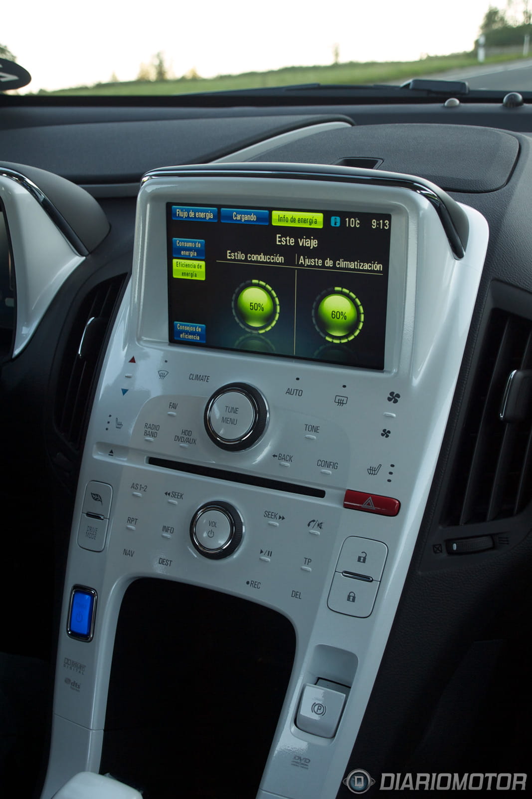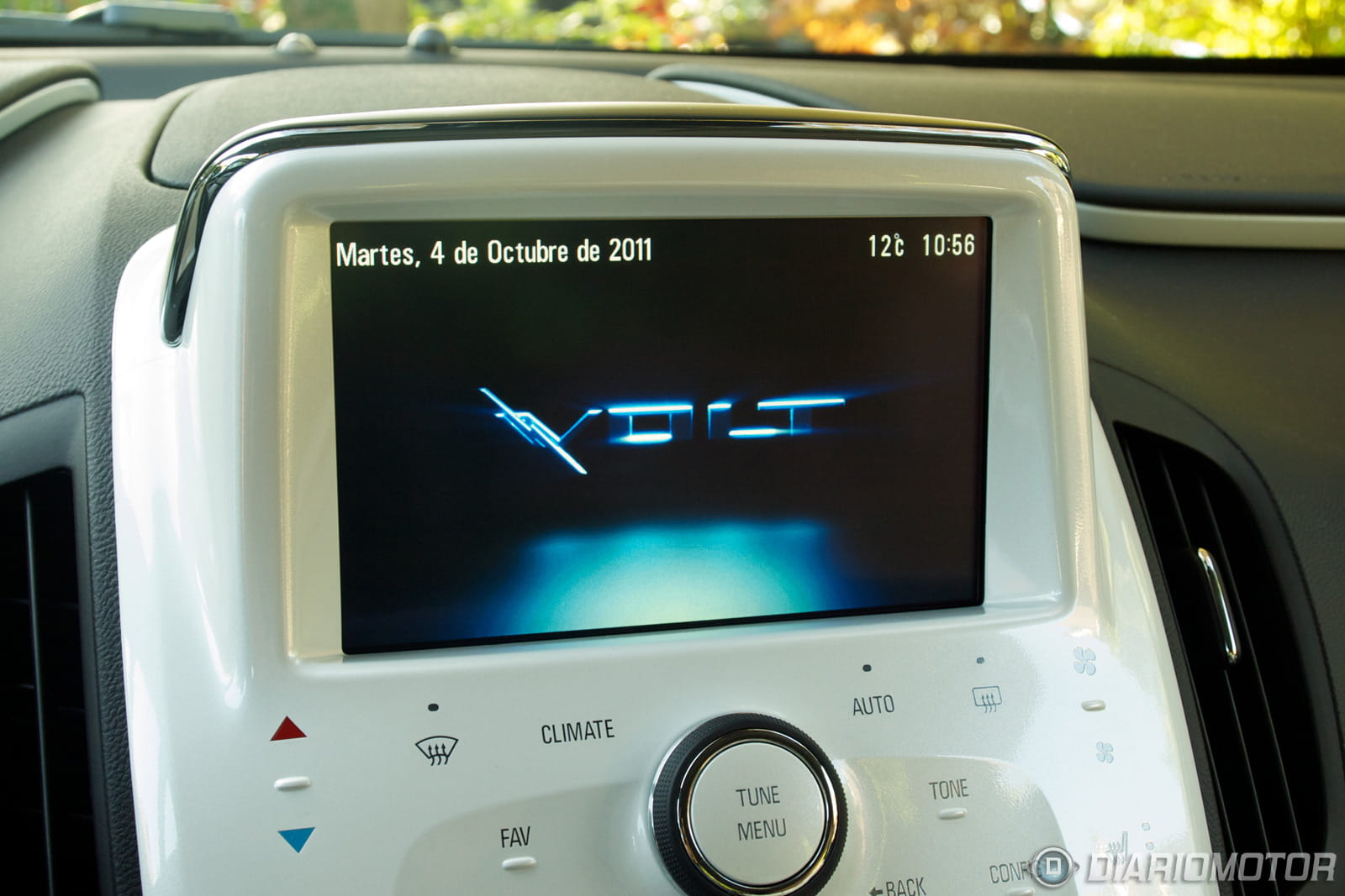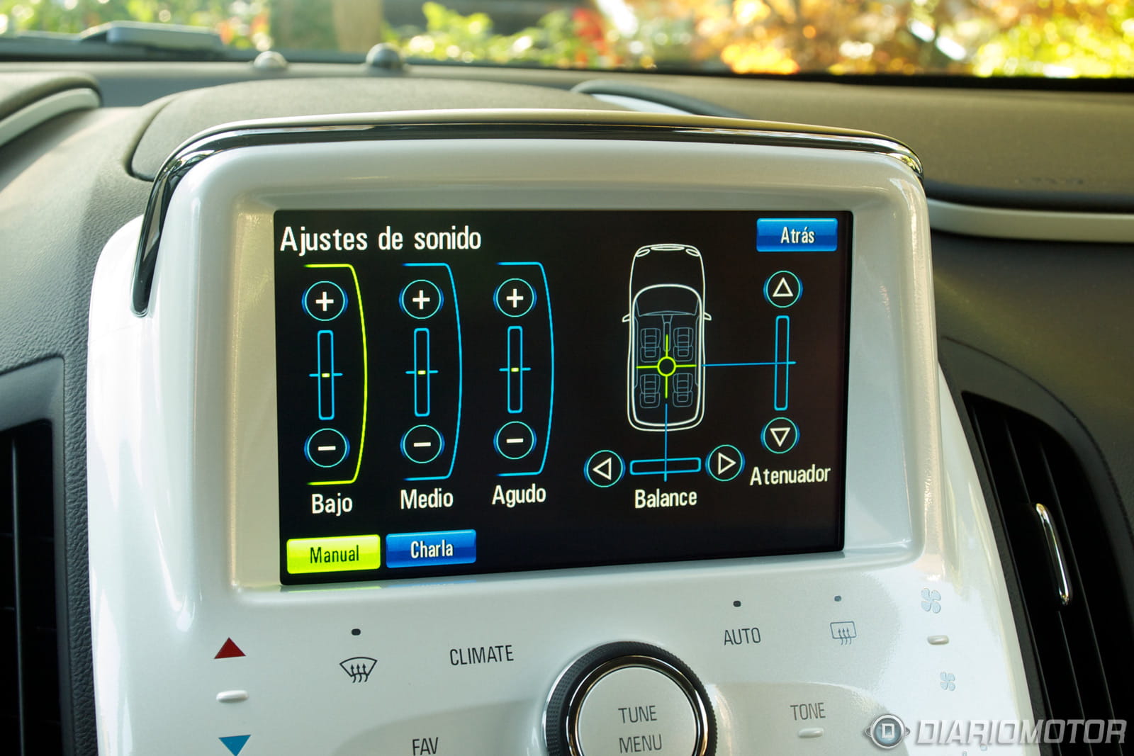 El equipamiento del Chevrolet Volt es prácticamente cerrado y hay pocas opciones disponibles. Tiene lo que tiene y no está nada mal. En este sentido, por lo menos si que se nota en el precio. Aparte de las dos pantallas de 7 pulgadas que he mencionado antes (cuadro de mandos y salpicadero), cuenta con asientos calefactados (para reducir el uso de la climatización), manos libres Bluetooth integrado, equipo de sonido Bose con seis altavoces, climatizador automático y un disco duro integrado de 30 Gb con toma USB en el portaobjetos central.