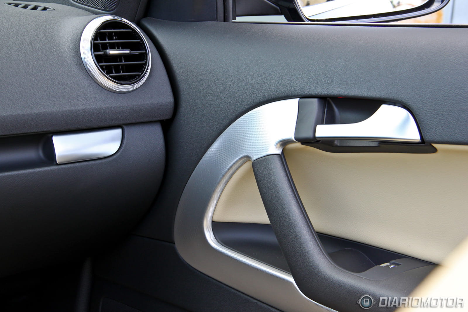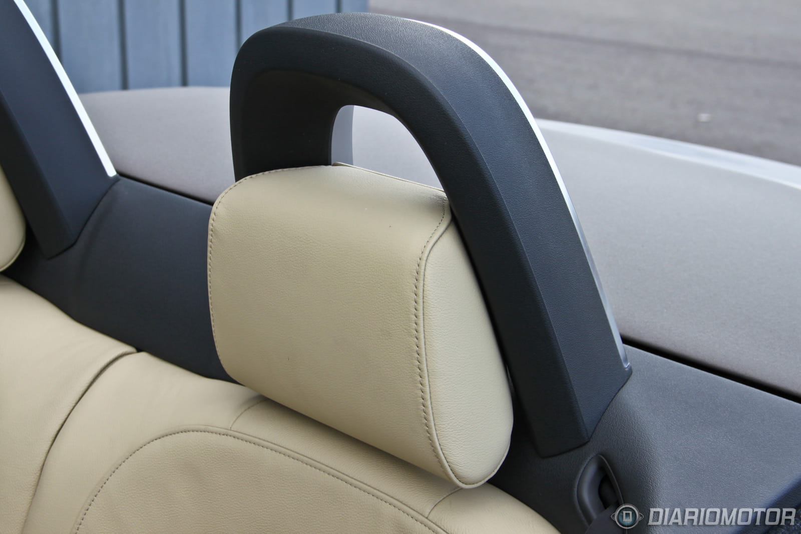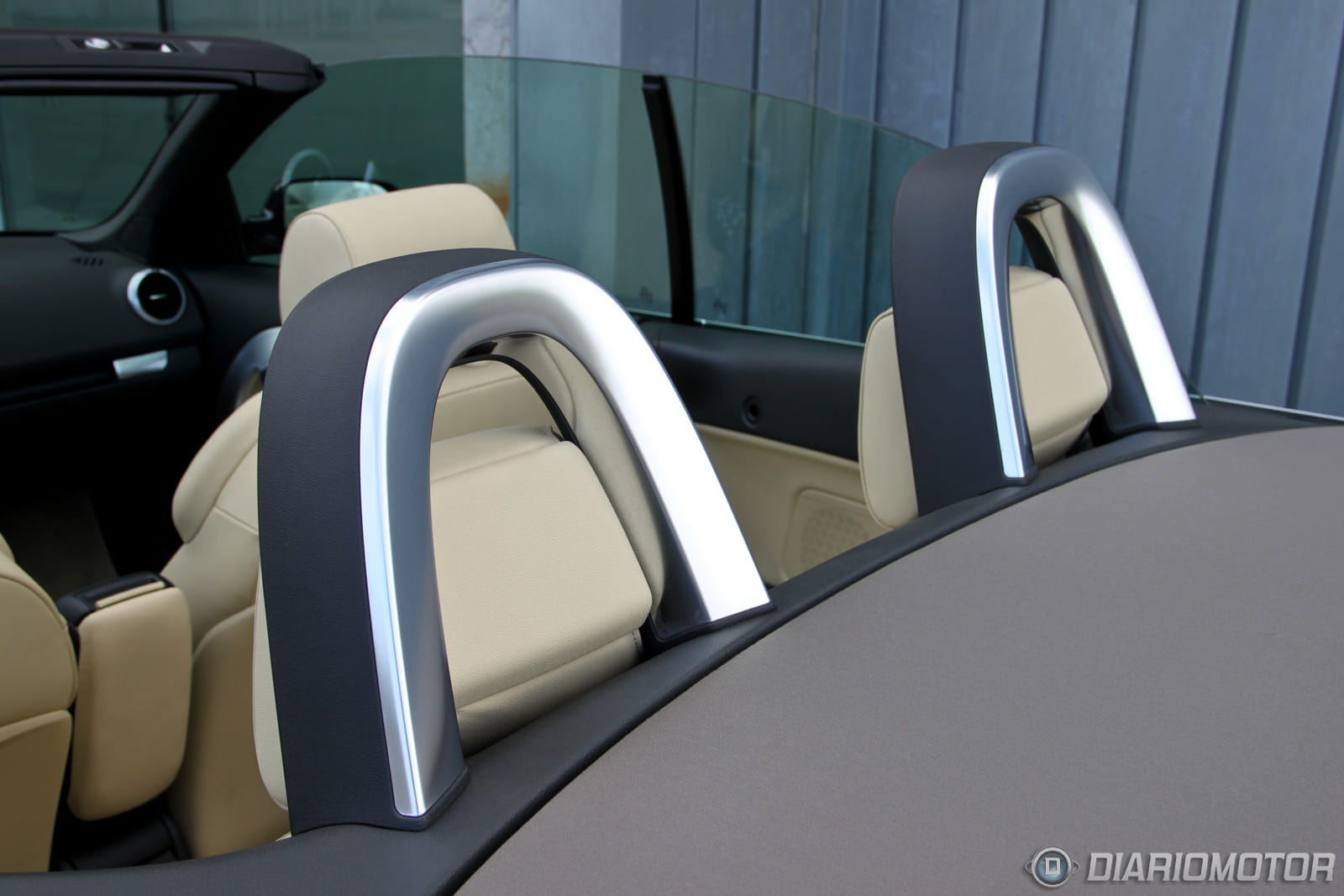 La radio CD Concert con 8 altavoces y llantas de 17 pulgadas completan una dotación de serie que no es demasiado amplia, tiene todo lo correcto pero le falta un toque de distinción. Eso se consigue a base de opciones, que son las que realmente hacen lucir a nuestra unidad de pruebas… e incrementan su precio en más de 9.000€. Por ejemplo, hemos disfrutado de la pintura metalizada Azul Scuba (735€) o del Paquete Aluminio (240€), en que los arcos antivuelco y base de la capota reciben detalles en este metal.