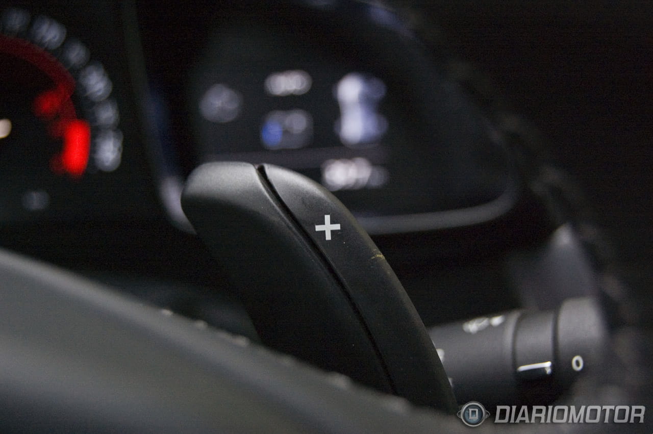 Conductor y acompañante están separados por una gran consola central que se prolonga desde el salpicadero y que acoge un reposabrazos, los botones que gestionan la apertura de las ventanillas, el selector de marcha (en el caso de los automáticos) y el selector de modo de conducción (en el caso de los Hybrid4). Desde mi reconocida ignorancia me pregunto si la parte inferior de la consola central podría haberse aprovechado el espacio para portar objetos, al más puro estilo Toyota Prius dado que en principio ahí no se aloja la caja de cambios, ni baterías ni otros dispositivos en el caso del híbrido.