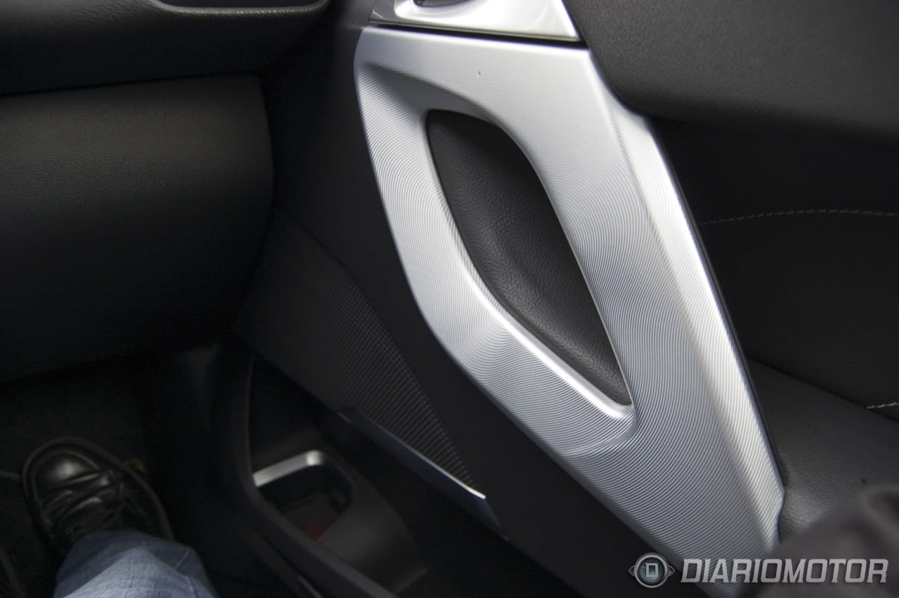 Nada más acceder nos encontramos unos comodísimos asientos tapizados con piel con las costuras visibles, la misma piel que se ha empleado en parte del revestimiento de las puertas, la visera del cuadro de mandos o la cobertura del volante. El tercio superior del salpicadero está recubierto con un plástico rugos y ligeramente reblandecido muy agradable al tacto y ofreciendo una buena sensación de durabilidad. En las puertas también nos encontramos con unos agarradores de gran tamaño de aluminio pulido.
