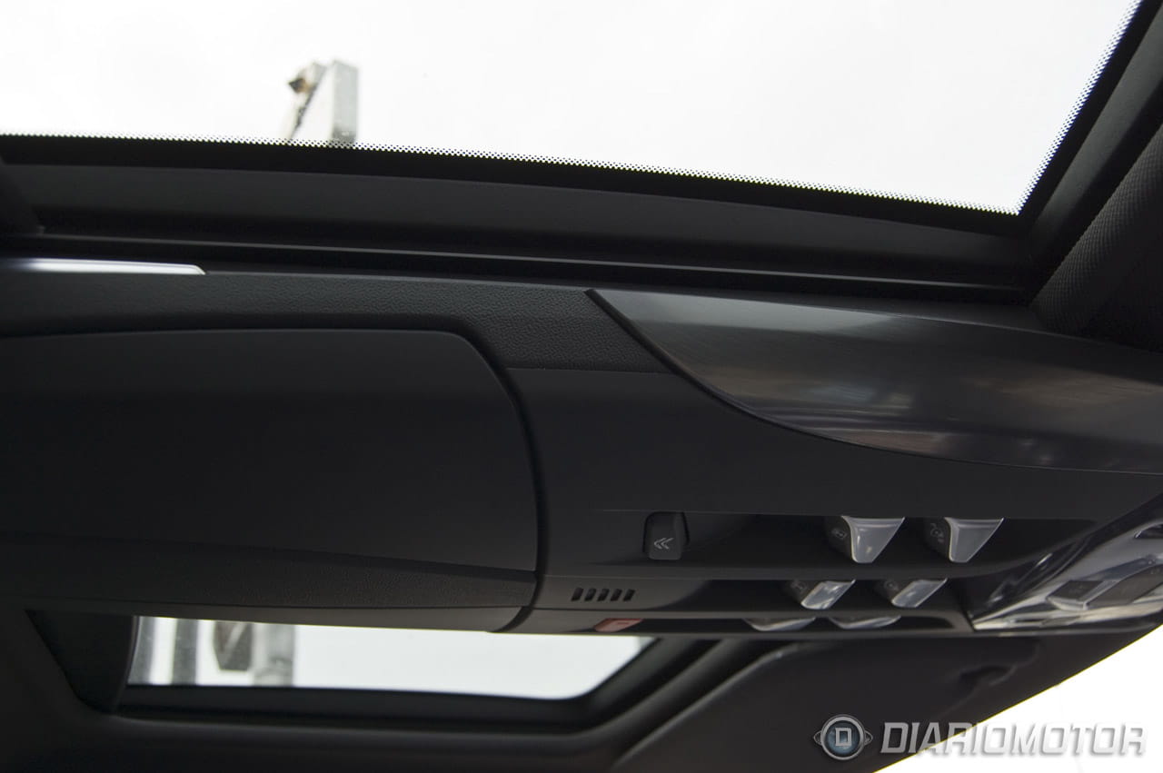 Que Citroën denomine cockpit al habitáculo de su nuevo DS5 no es una casualidad, ya nos adelantaron que en su diseño se habían inspirado en la industria de la aviación. Eso se aprecia en detalles como el techo acristalado en tres piezas cuyo diseño es muy atractivo pero obviamente no es tan luminoso como un techo acristalado completo. En la consola de botones del techo se puede accionar el sistema de apertura y cierre de las lunetas superiores y las cortinillas de privacidad.