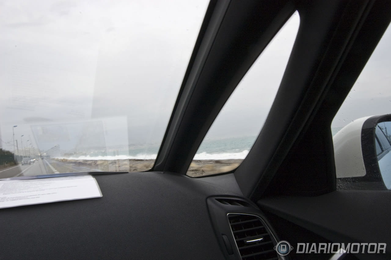 En cuanto a la visibilidad lateral, el nuevo Citroën DS5 peca de un defecto que ya he podido apreciar en algunos monovolúmenes. El característico boomerang del pilar A termina por ser un estorbo que en muchos casos nos impide ver el bordillo y la línea de la carretera por el lado del conductor, sobretodo cuando tenemos que girar en curvas o rotondas. Tampoco nos resultó demasiado práctico el tamaño reducido de las ventanillas laterales delanteras y el grosor considerable del pilar B.