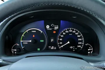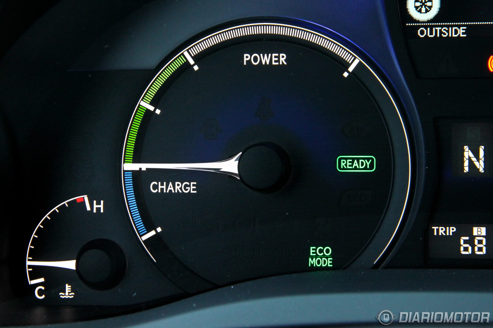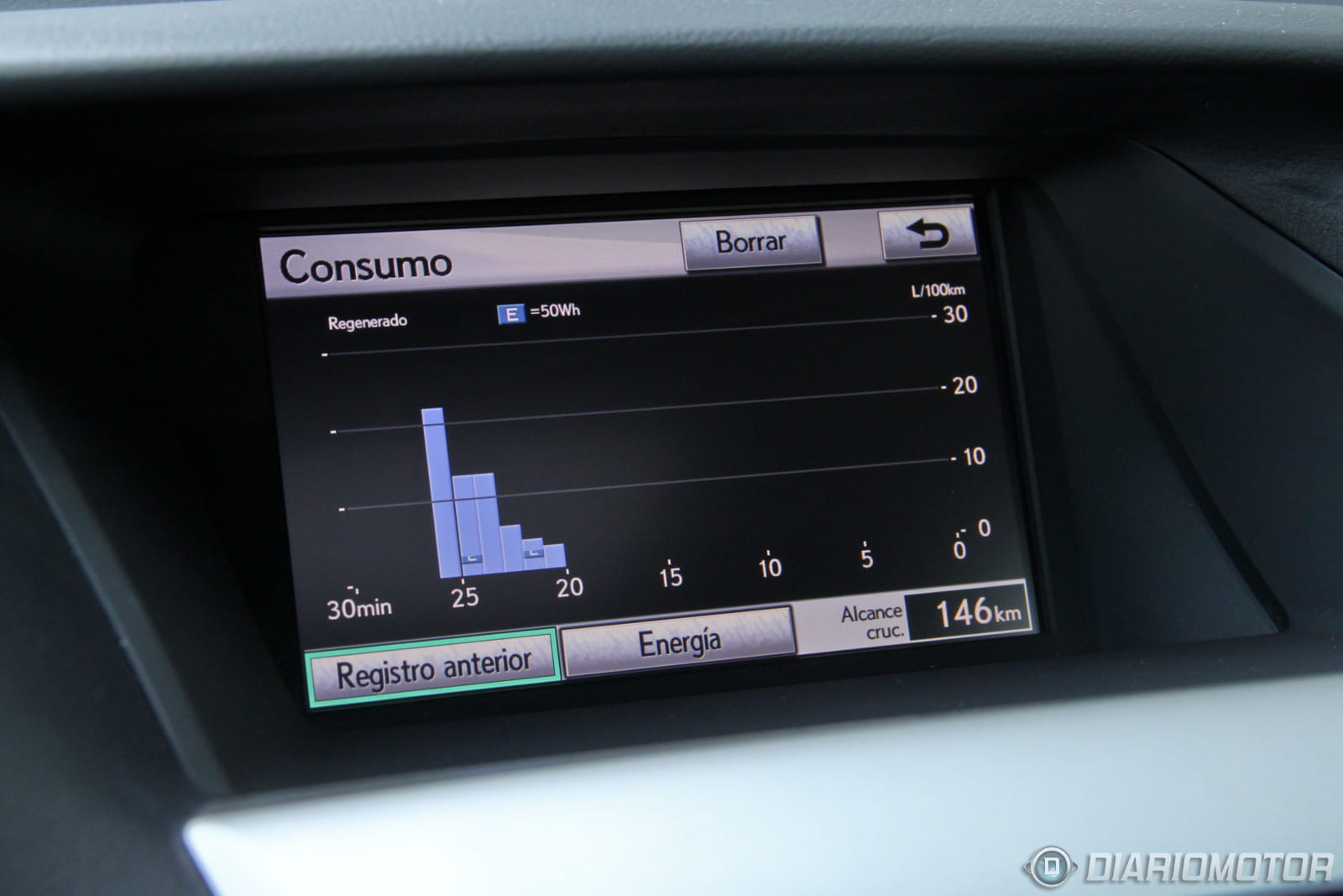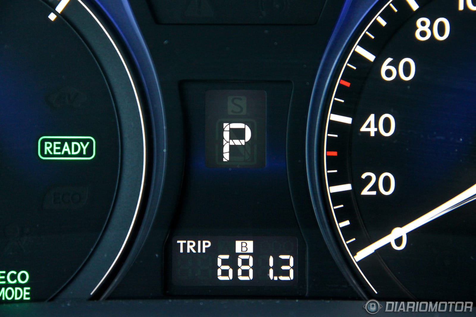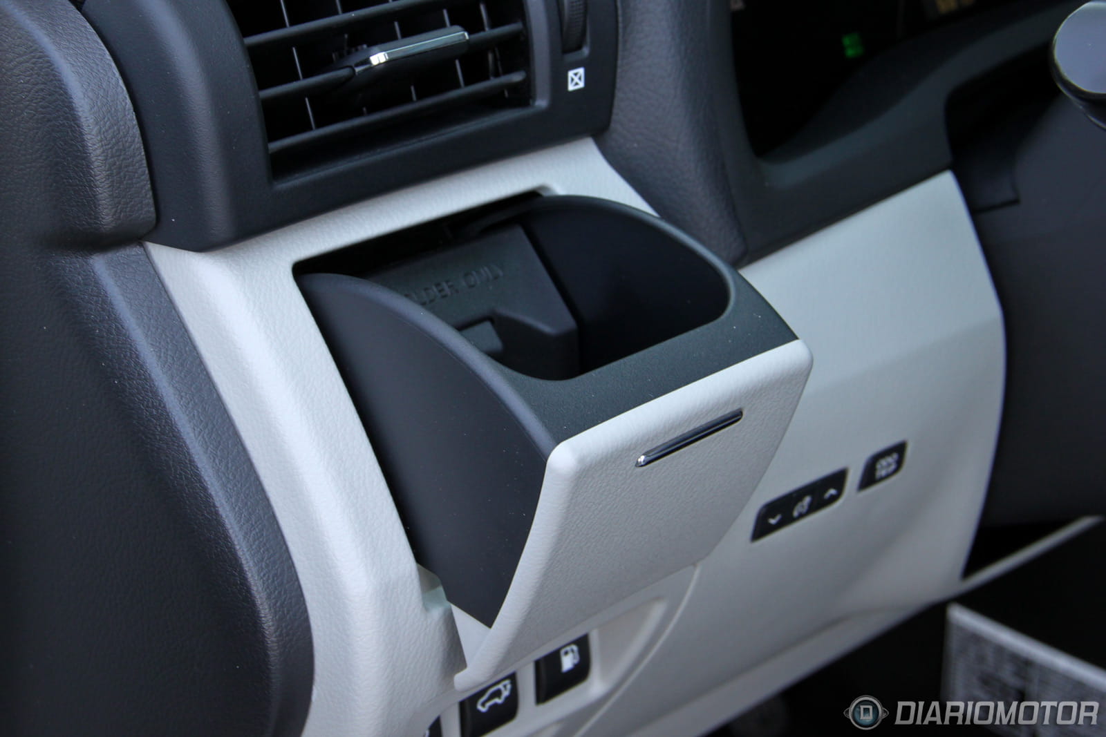 Hablando de ergonomía, a pesar de la extraña forma de la consola central, todos sus botones están muy a mano y no es necesario estirar la mano más de la cuenta. La pantalla multifunción de 8 pulgadas es clara y en ningún momento le incide directamente la luz del sol, alterando su visibilidad. Lo mismo ocurre con la instrumentación, que es muy similar a la de otros híbridos: un potenciómetro a la izquierda y un velocímetro, con dos pequeñas pantallas LCD para los odómetros y el ordenador de a bordo.
