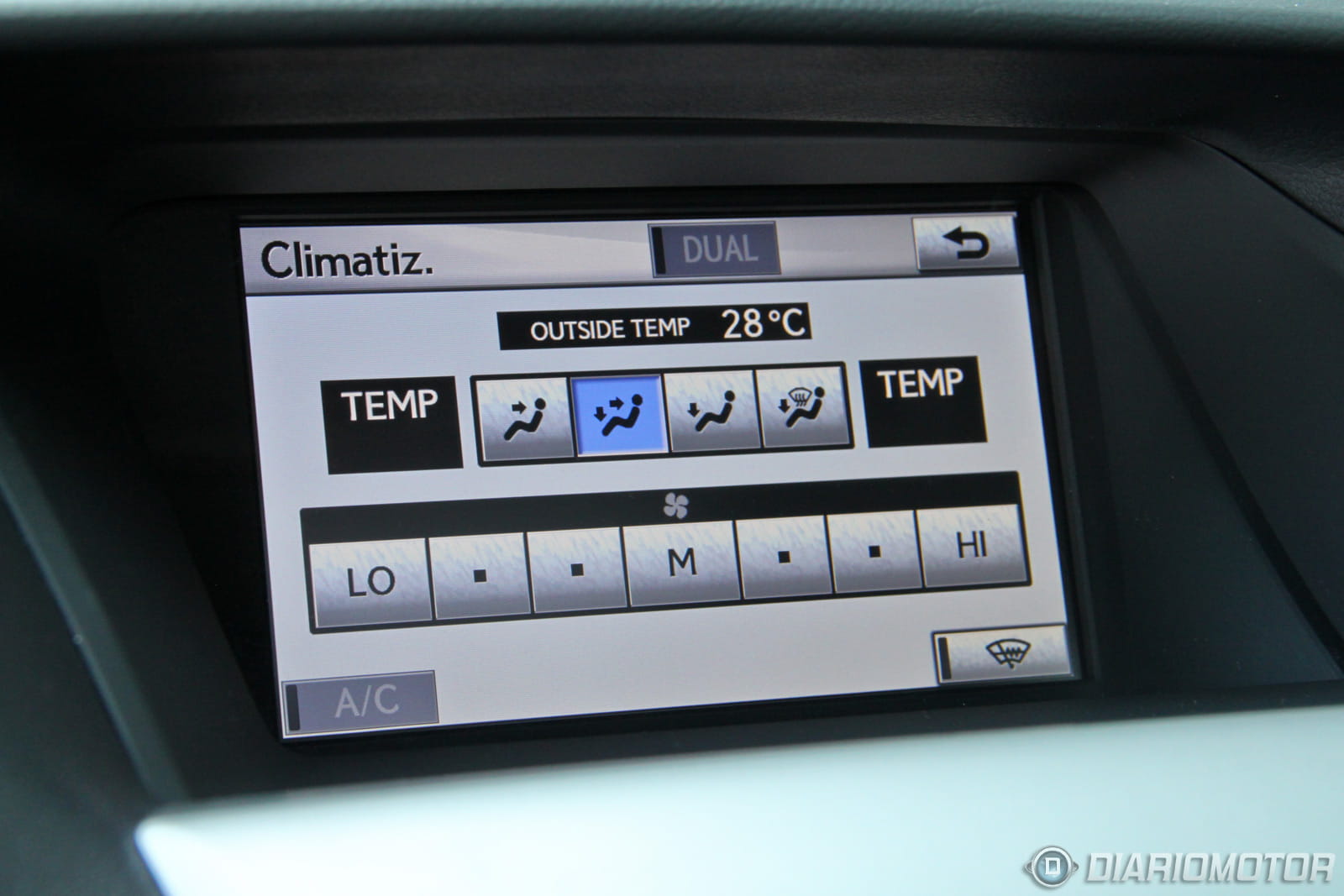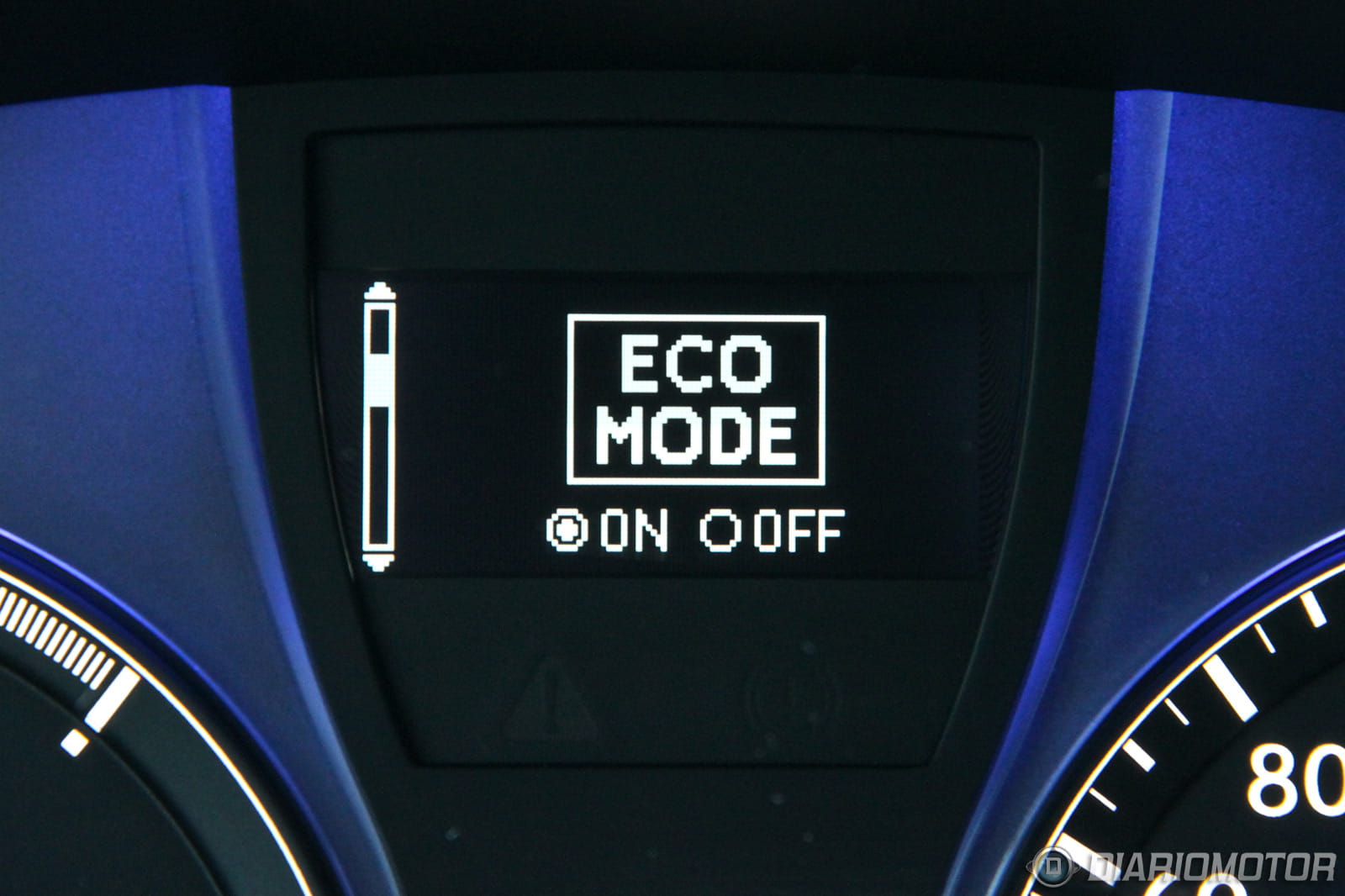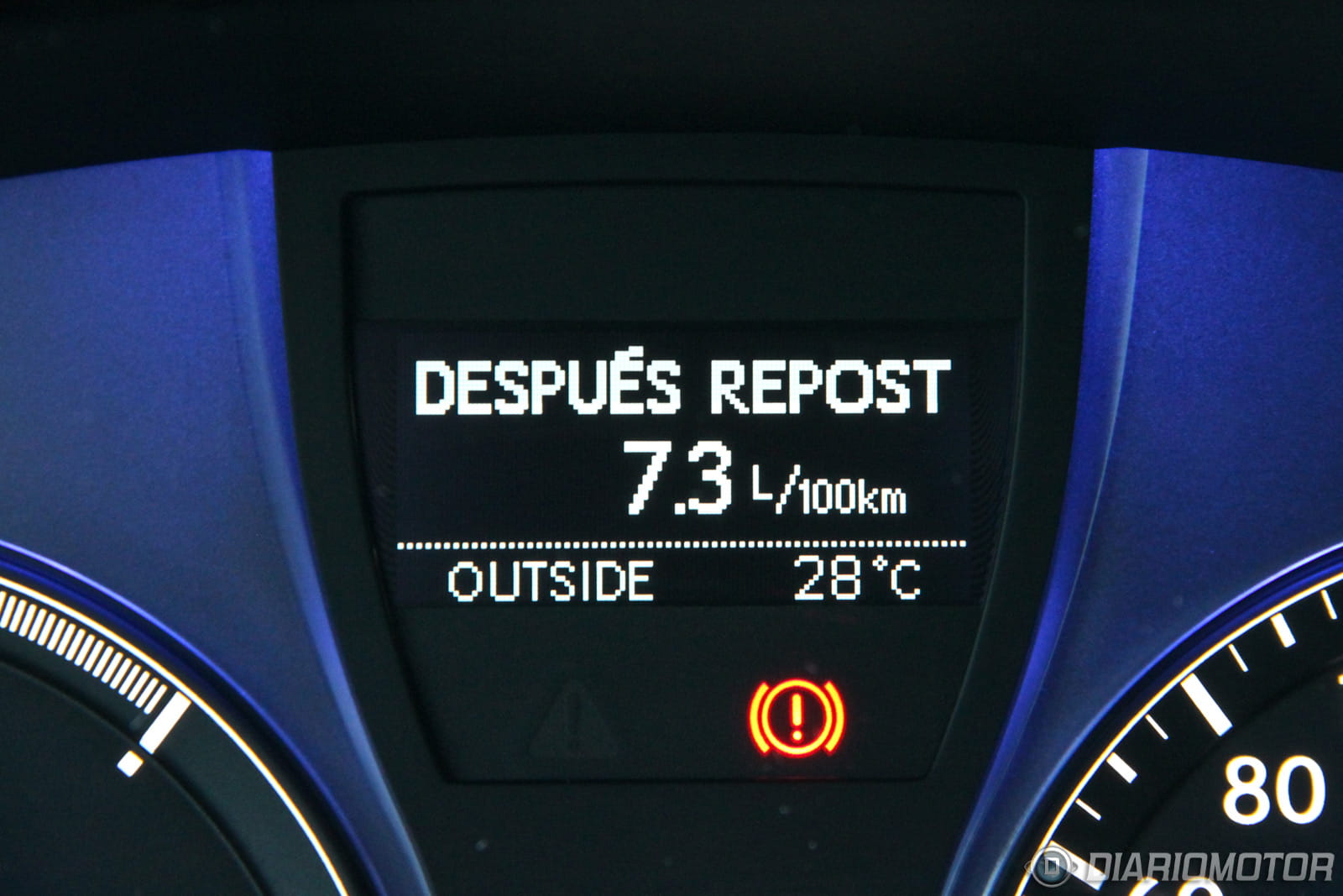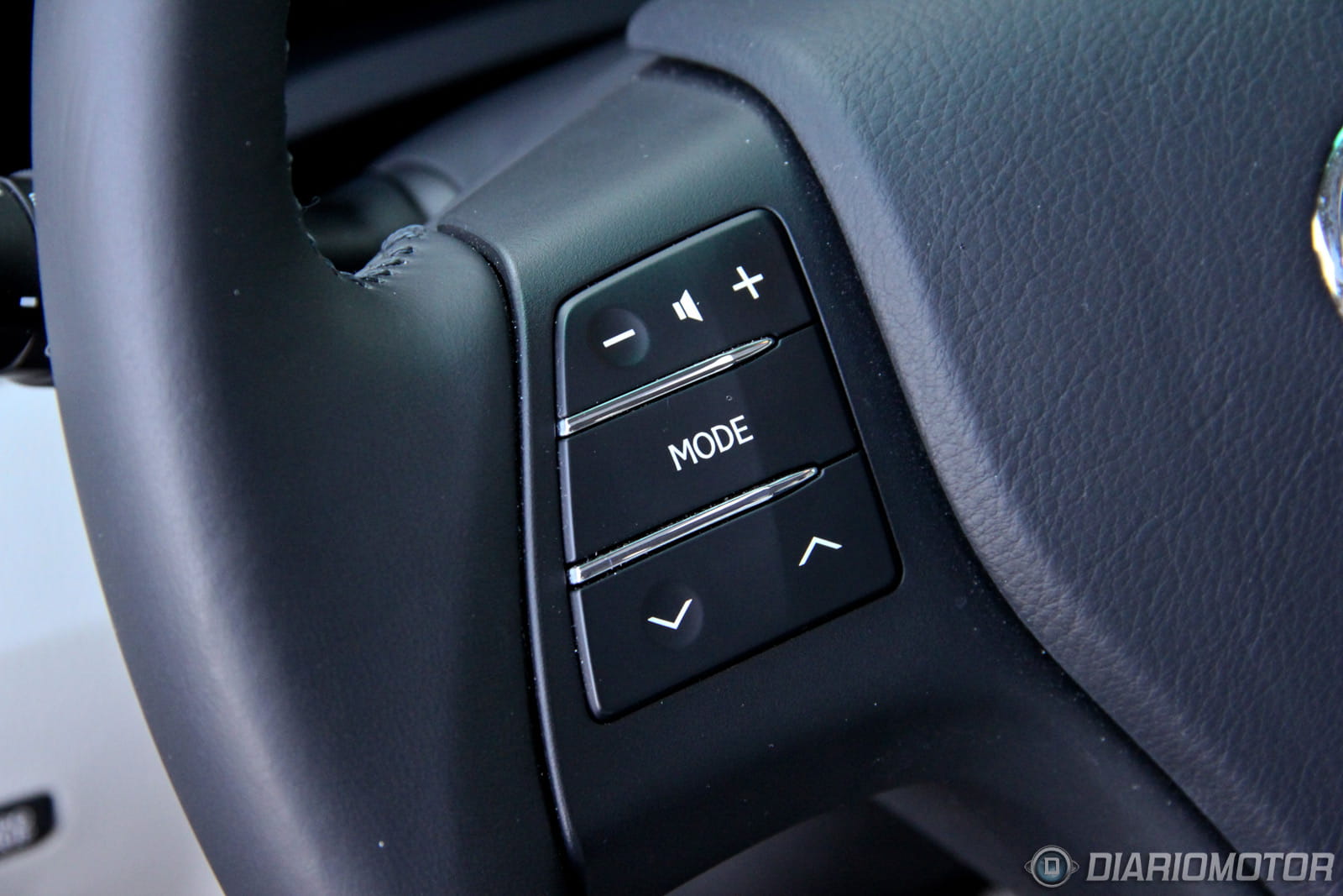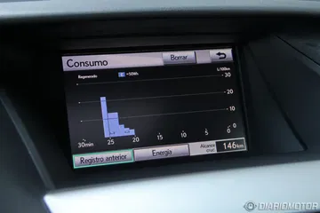 Hablando de ergonomía, a pesar de la extraña forma de la consola central, todos sus botones están muy a mano y no es necesario estirar la mano más de la cuenta. La pantalla multifunción de 8 pulgadas es clara y en ningún momento le incide directamente la luz del sol, alterando su visibilidad. Lo mismo ocurre con la instrumentación, que es muy similar a la de otros híbridos: un potenciómetro a la izquierda y un velocímetro, con dos pequeñas pantallas LCD para los odómetros y el ordenador de a bordo.