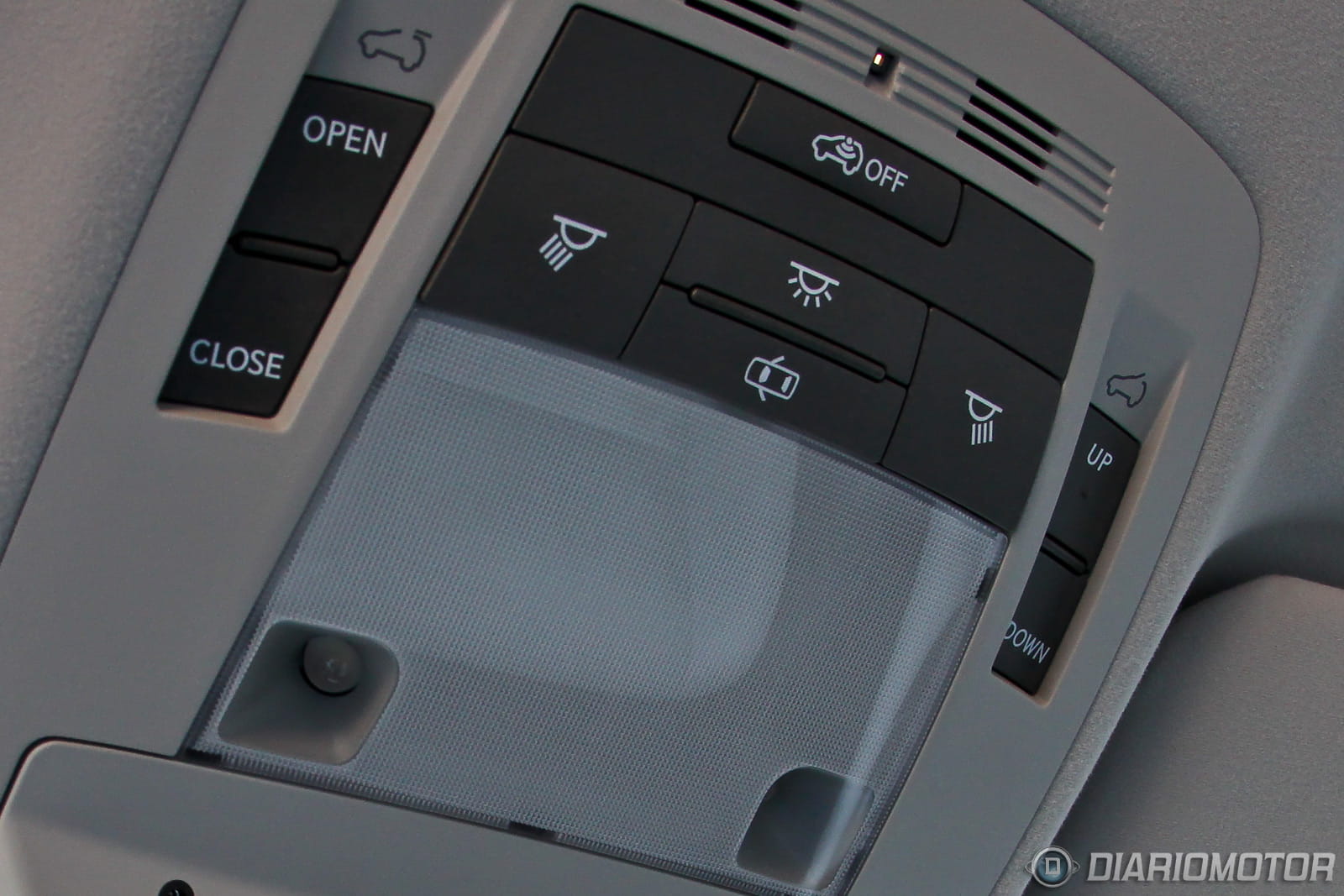 Abro la puerta del conductor y me aúpo al asiento del conductor, desde cuyas alturas se domina al tráfico la plebe sin problema alguno. Los asientos son muy grandes, tienen un mullido relativamente blando y son muy, pero que muy cómodos. El cuero blanco parece de buena calidad. La regulación es eléctrica (con tres memorias para el conductor) para los asientos delanteros. En ambos tenemos regulación lumbar. Al accionar el contacto el asiento nos acerca automáticamente al volante.
