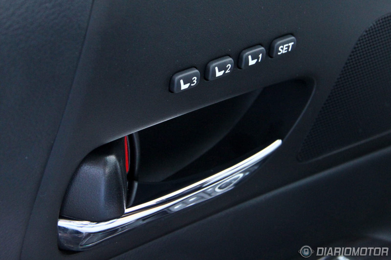 El volante es regulable eléctricamente en altura y profundidad, y también se acercará a nosotros al accionar el contacto, en la última posición memorizada. Una vez el coche nos ha puesto “a tono”, comienzo a comprobar aspectos como las cotas de espacio. La nota del Lexus RX 450h es excelente en este aspecto, el espacio a la altura de la cabeza, codos o rodillas es abundante. En cuanto a ergonomía y calidades, comencemos por este último aspecto.