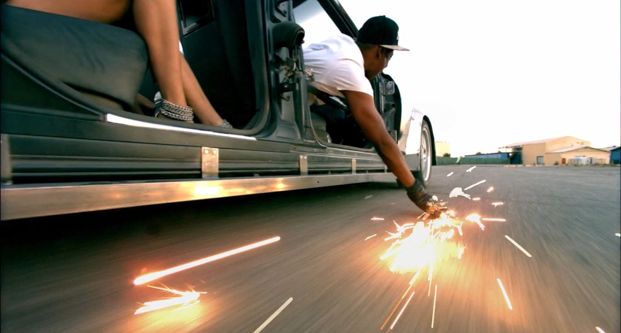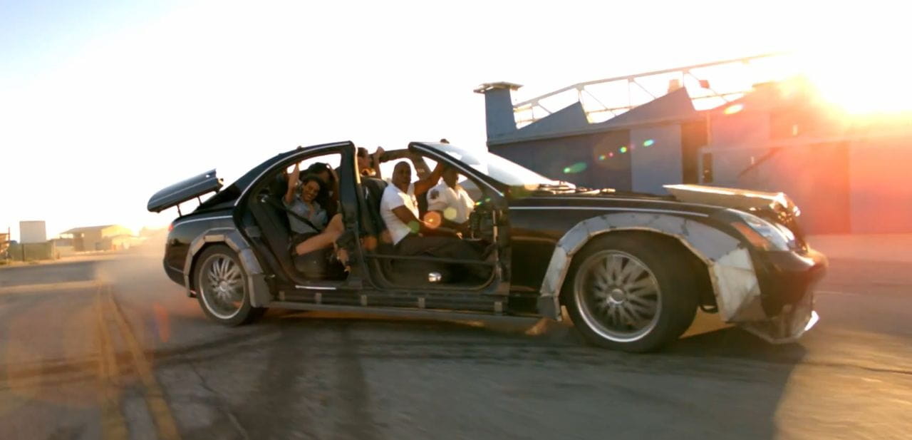 Al principio del vídeoclip se ve la berlina de superlujo – hablamos de un rival del Rolls-Royce Phantom, que cuesta en torno a los 300.000€ – en su estado original: señorial, elegante, imponente. Con herramientas de gran calibre su techo es cortado y comprobamos como se quita la luna trasera o las puertas. Unos extraños trozos de metal se colocan en torno a los pasos de rueda, con soldaduras muy visibles y realmente mal terminadas. Las llantas originales se reemplazan por un modelo de aftermarket.