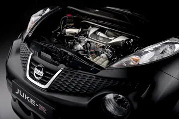 Lógicamente el elevado par que desarrolla este motor ha obligado a los ingenieros a hacer hueco en este Nissan Juke-R montar también la transmisión y la caja de cambios de un Nissan GT-R, así como las suspensiones que se asientan sobre una carrocería, la del Nissan Juke, que ha sido ensanchada y rebajada a la medida de las prestaciones que se esperan de este super-crossover.