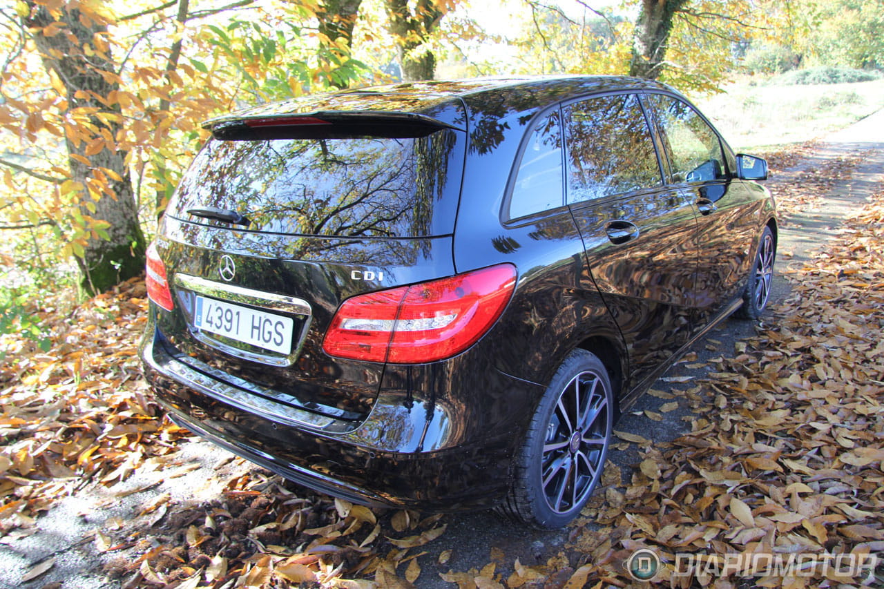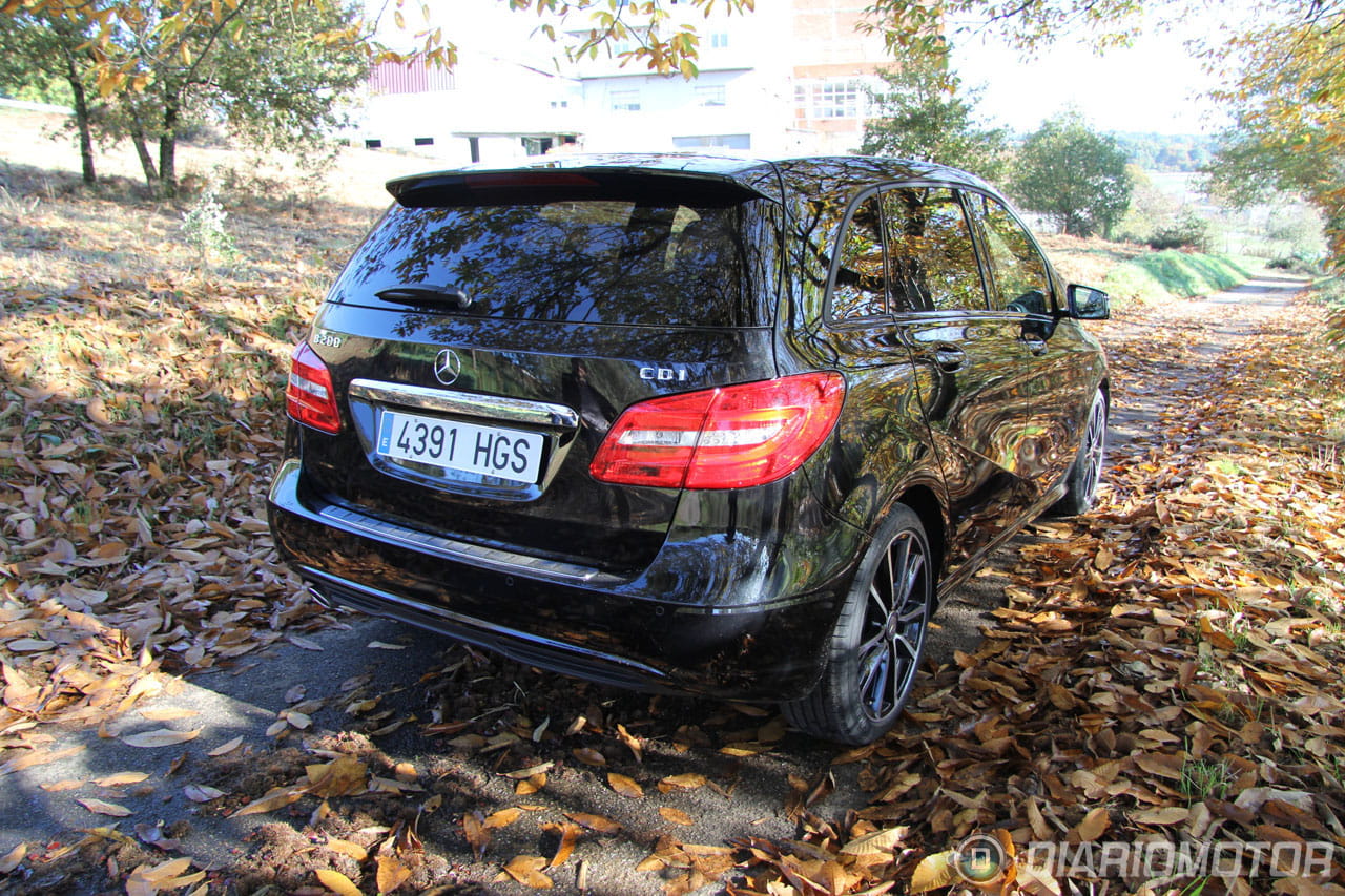 La clásica imagen del Mercedes Clase B no ha desaparecido en absoluto porque el que conociera el Clase B anterior se sentirá como en casa. Sin embargo los pequeños detalles que suelen evolucionar a lo largo del ciclo de vida de un coche sí que han puesto al monovolumen en otro punto, especialmente en lo concerniente al frontal; los faros con luces LED, tanto las de tipo diurno como las de intermitencia, y el frontal le dan un nuevo aire. En la zaga Mercedes ha querido ser más comedida, las ópticas cambian pero más suavemente.