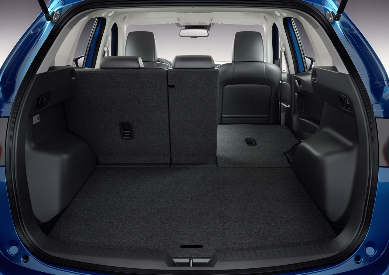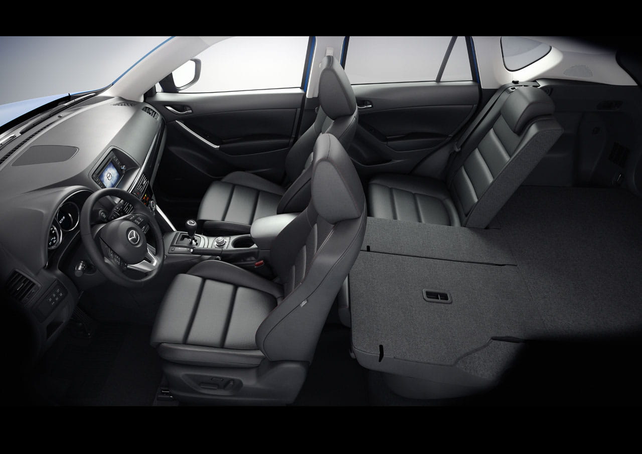Tal vez el Mazda CX-7 pecase de ser algo escaso, respecto a la competencia, en sus cotas y su volumen de carga para sus dimensiones. Y parece también que Mazda ha hecho propósito de enmienda con el nuevo Mazda CX-5 que es 15 centímetros más corto, pero su batalla es bastante similar y únicamente 5 centímetros más corta. Y es más, no sólo sus cotas interiores han debido mejorar notablemente respecto a su “hermano mayor” sino que el espacio de carga es similar con 463 litros de carga (sin contar el compartimento inferior, contándolo son 500 litros).