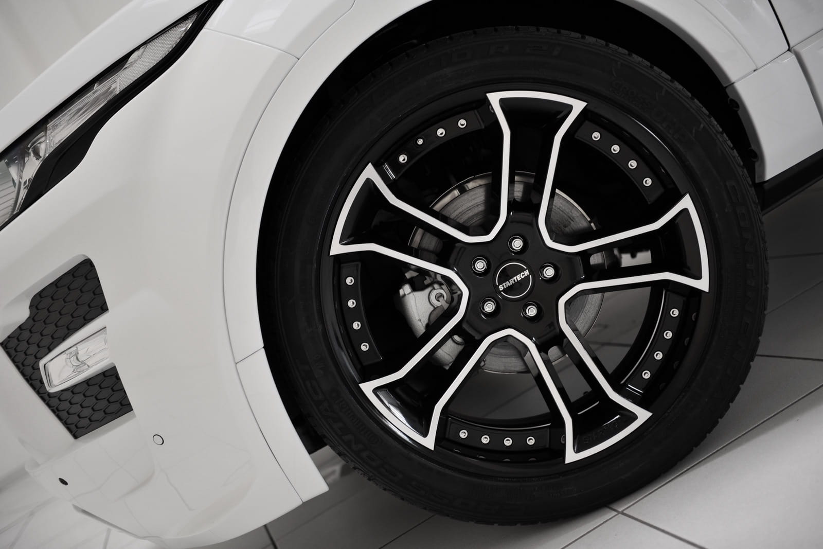 El festival tuning para el Range Rover Evoque acaba de empezar, sólo os advertimos. Startech acaba de anunciar su propuesta para el SUV coupé de Land Rover, que ya es todo un éxito de ventas, aclamado por crítica y público. Startech es una división de Brabus – que se centra en muy pocas marcas – y nos presentan un Evoque de dos sabores: blanco/negro o rojo/negro. Deportivo, pasional, ostentoso, llamativo. Las primeras modificaciones son un completo kit exterior de carrocería.
