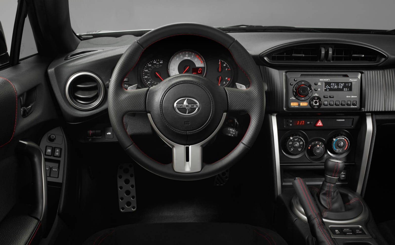 Si las diferencias entre Toyota GT 86 y Subaru BRZ eran mínimas, aún son menores entre el GT 86 y el nuevo Scion FR-S. Nos tocará afinar la vista para percatarnos de la ausencia de luces antiniebla, de los controles más sencillos y clásicos a bordo, la ausencia de sistema de navegación y poco más… Y es que hasta el emblema de Scion es prácticamente un calco del logotipo de Toyota.
