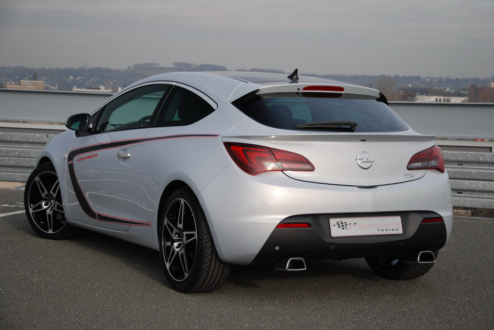 Pero lo que más destaca en su exterior son sin duda sus llantas. Si ya de serie en sus versiones Sport el Astra GTC incorpora llantas de aleación de 18 pulgadas, Steinmetz va todavía más allá y se decanta por unas llantas de 19” de diámetro con diseño exclusivo, con neumáticos 245/40. Desde luego de goma en contacto con el asfalto no va a andar escaso. En el caso de Irmscher todavía se va más allá, con unas quizá excesivas de 21 pulgadas.