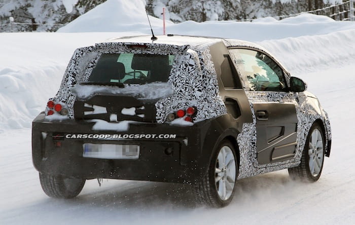 Las fotografías espía que os adjuntamos en este artículo y que publicaban en Carscoop aún no son nada esclarecedoras, pero ya se aprecia el contorno de un vehículo de tres puertas y corta distancia entre ejes. Su longitud podría ser ligeramente superior a la media de sus rivales, se habla ya de unos 3,7 metros y como es lógico cuatro únicas plazas.