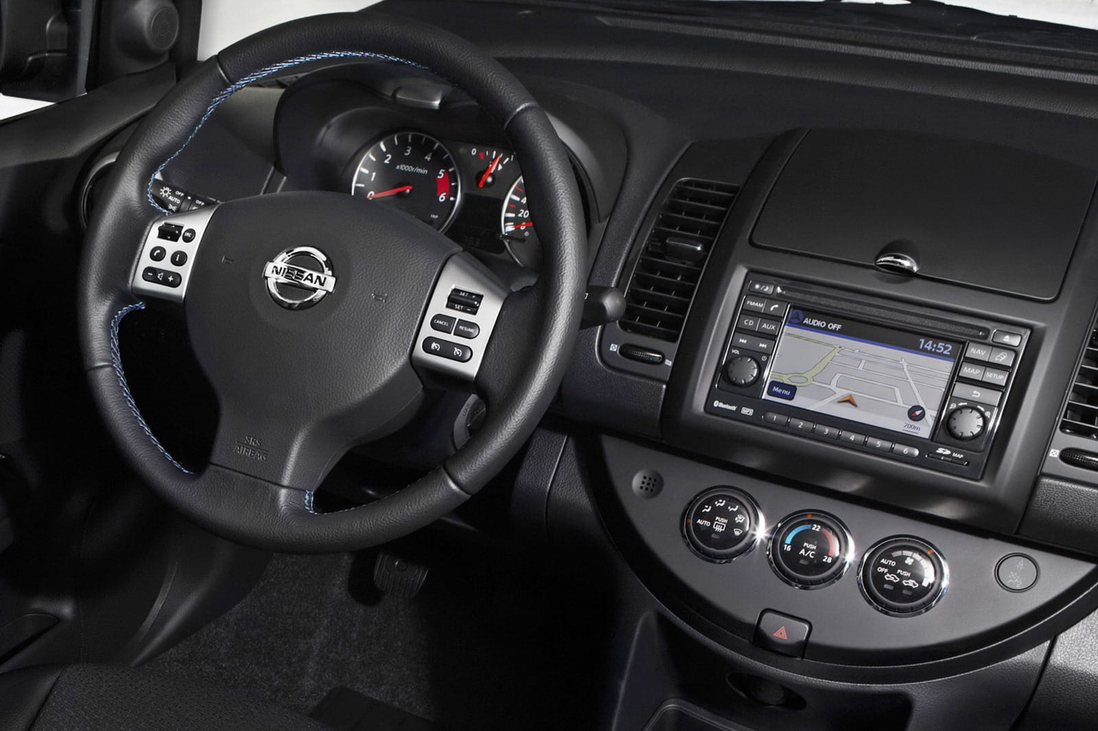 Los tapizados se han renovado con nuevas costuras azules y, a falta de confirmación para el mercado español, se introducirá un equipamiento de serie en la gama Nissan Note más completo que entre otras cosas incluiría climatizador automático, sensor de iluminación y lluvia.