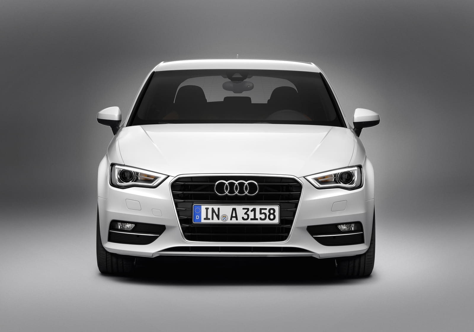 El nuevo Audi A3 gana empaque con un frontal que sigue la línea de las últimas creaciones de la marca. Así pues se introducen unos faros de formas caprichosas y una sugerente iluminación diurna en el contorno, una parrilla generosa con diseño hexagonal Singleframe cromada, asi como un carenado oculto tras la matrícula en la zona central y unas defensas estilizadas para integrar un pequeño labio inferior y el espacio de la iluminación diurna.
