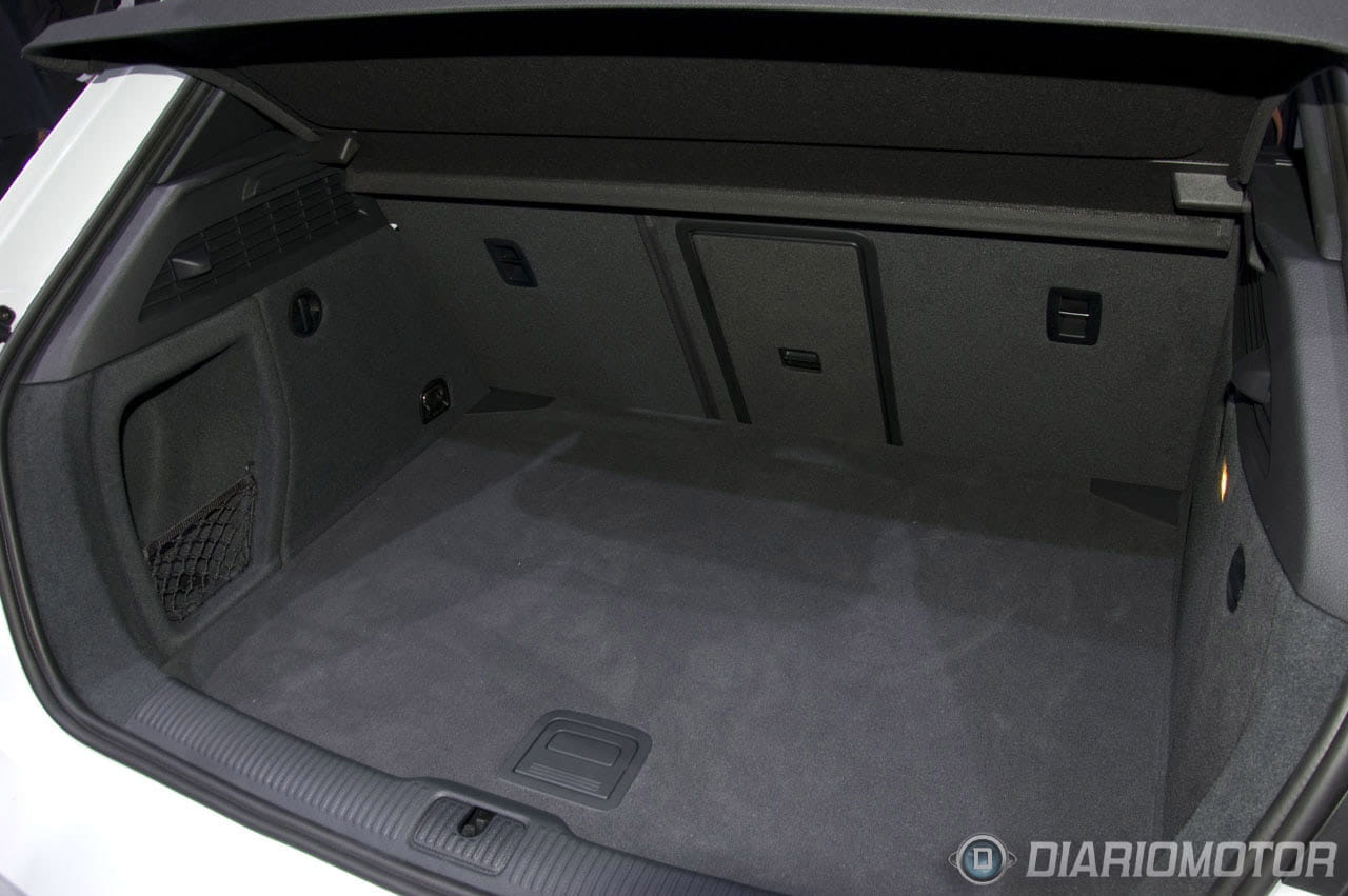 En la zaga los nuevos grupos de pilotos posteriores se han alargado para extenderse hasta el portón del maletero para conferirle un toque moderno y tal vez también aumentar la anchura del portón y por tanto del acceso al espacio de carga. De hecho y a ojo de buen cubero parece que este habría ganado en profundidad y especialmente en la anchura de la boca de carga. En volumen de maletero, el A3 2012 cubica 365 litros, que pueden ampliarse hasta los 1.100 litros con el asiento trasero abatido.
