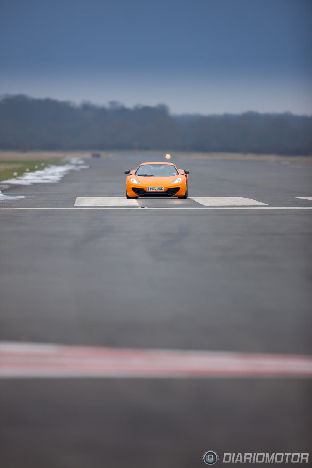 Después de haber conducido el McLaren MP4-12C en circuito, me piden que abandone la espectacular unidad de pruebas de color naranja que me había acompañado durante la jornada y me suba al MP4-12C de color rojo con el que tendré que abandonar el aeródromo de Dunsfold para salir a carretera abierta y ver cómo se comporta en el terreno donde va a ser usado en el 90% de las ocasiones.