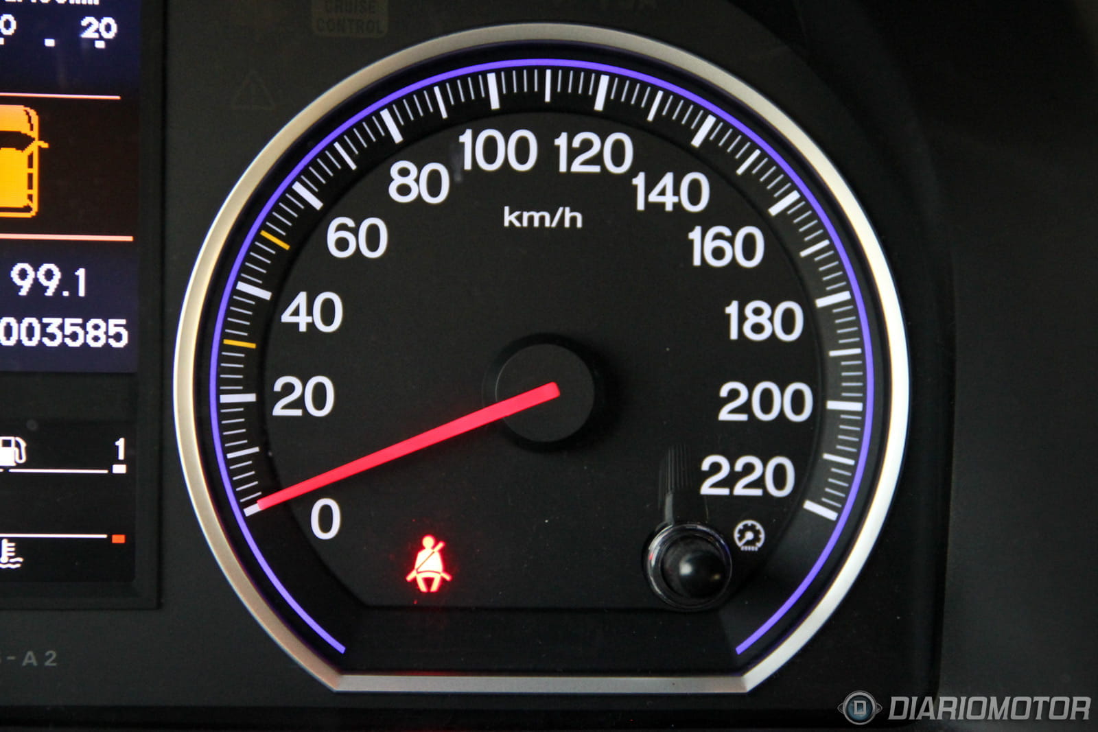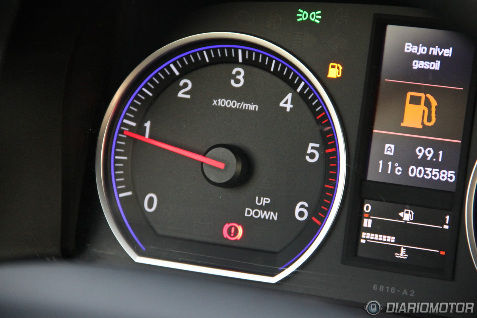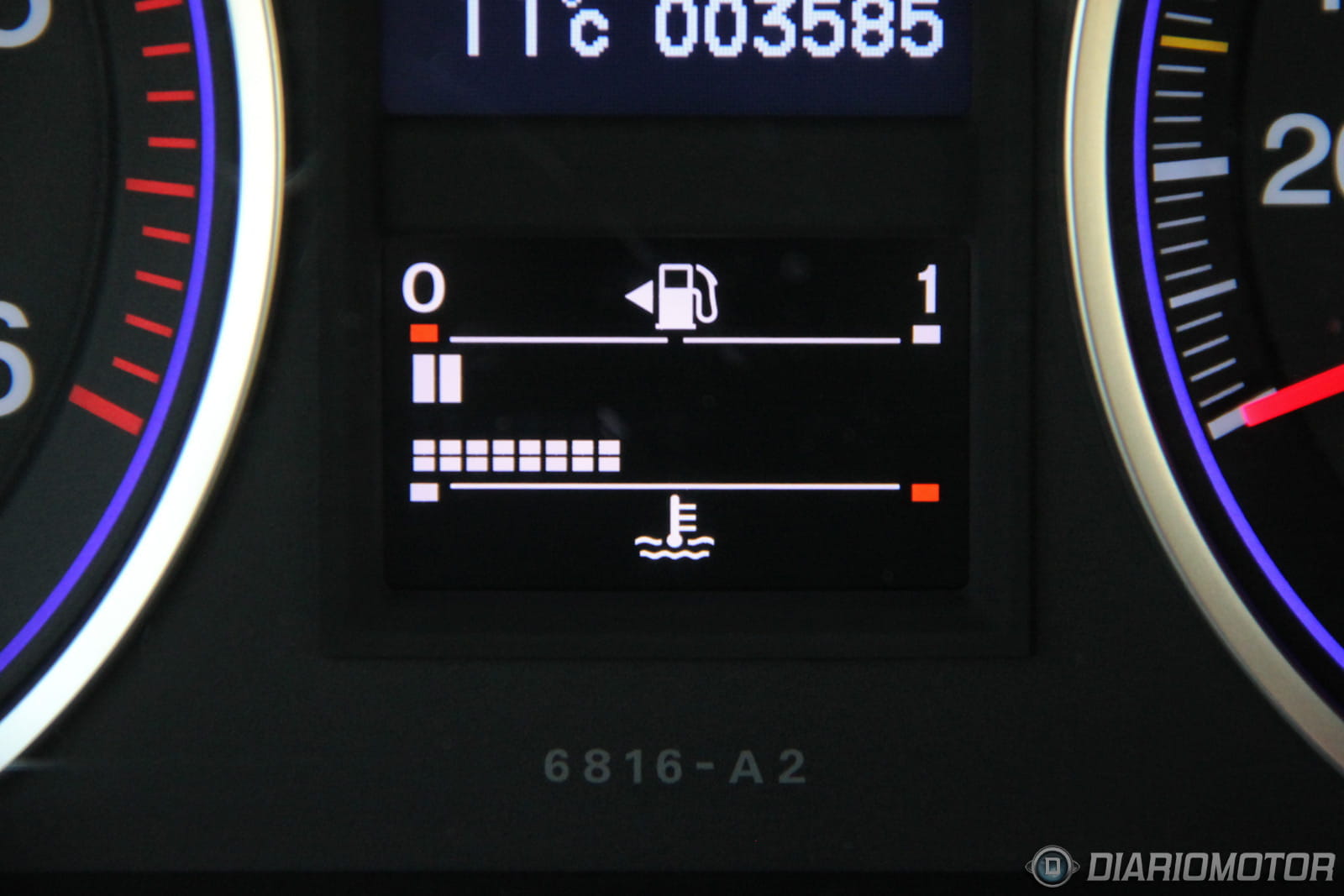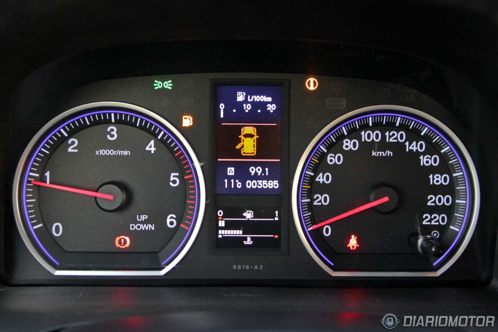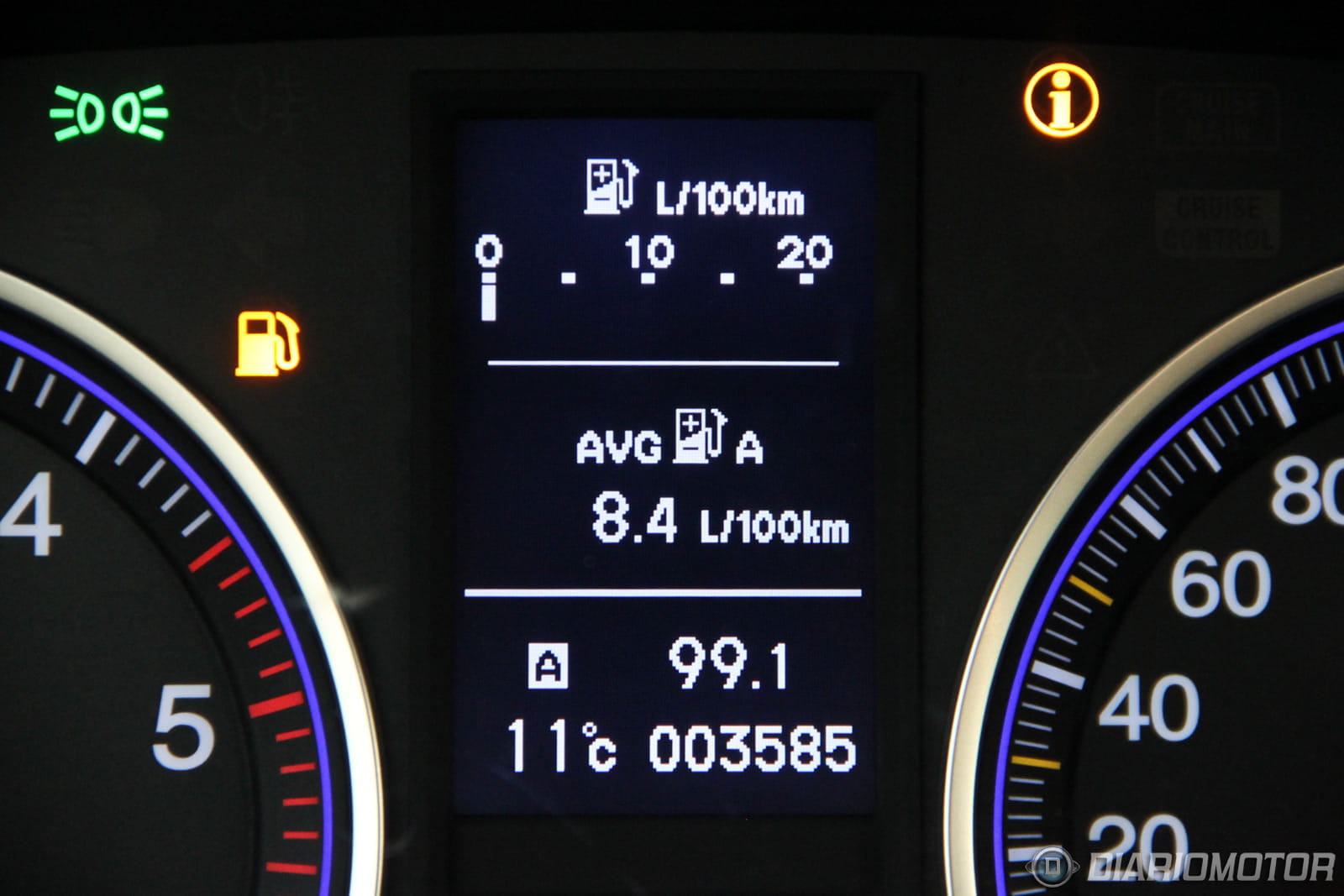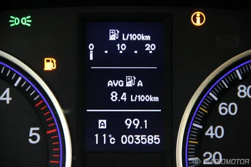 La instrumentación es sencilla y de buena lectura, aunque la visión del velocímetro queda parcialmente bloqueada cuando el volante está en la posición adecuada para mí. Los medidores de nivel de combustible y temperatura del agua son digitales. Tiene sistema de recomendación de cambio de marcha. La consola central está organizada con criterio y todos los mandos quedan muy a mano. El volante multifunción aglutina funciones de infotainment y el manejo del ordenador de a bordo.