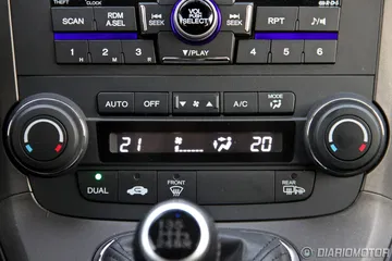 A nivel de practicidad, el Honda CR-V destaca por varias curiosidades. En primer lugar, cuenta con dos guanteras. La inferior está iluminada pero no es suficiente más que para la documentación. La superior no está iluminada, pero tiene varios litros de capacidad y un piso antideslizante. La consola central tiene varios huecos en su parte inferior, y no se extiende hasta unirse con la consola ubicada entre los asientos. Entre ambos elementos hay un espacio plano, ideal para un bolso, por ejemplo.