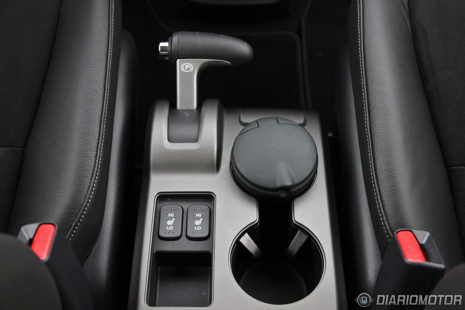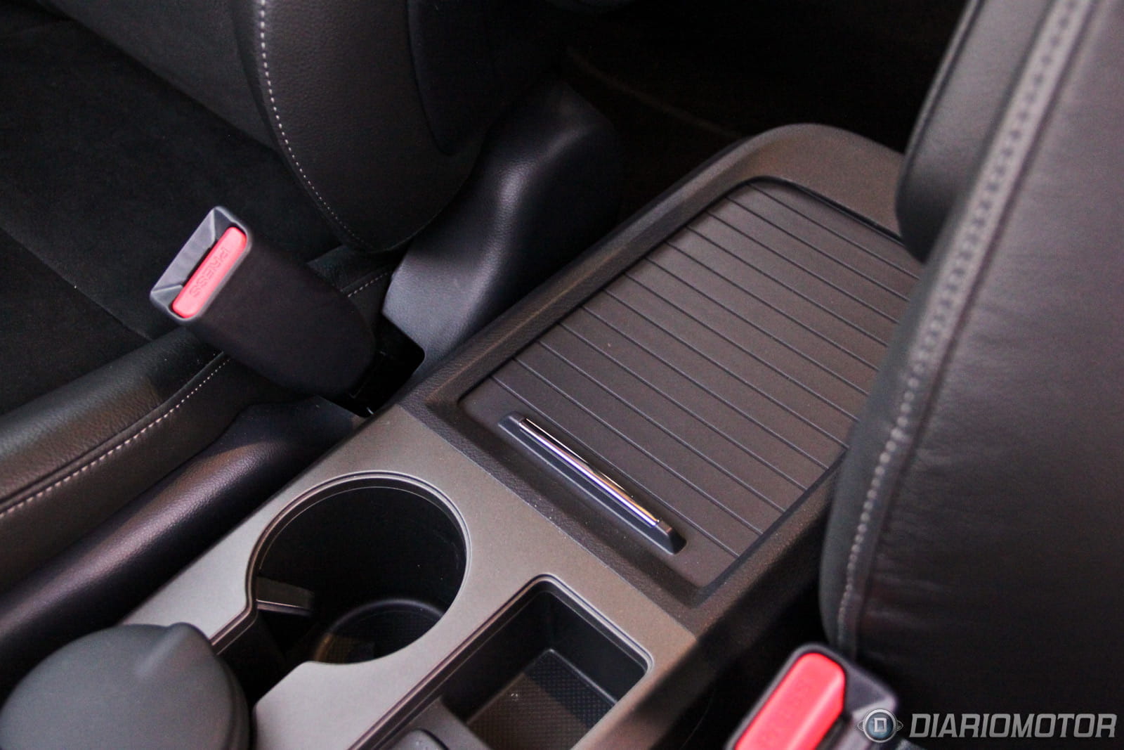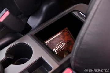 La consola entre los asientos tiene controles para la calefacción de los asientos, tomas auxiliares de audio y el freno de mano, que parece más propio de un avión. También podemos dejar bebidas y hay un hueco con tapa deslizante donde podemos dejar cosas como discos de música, en este caso un fantástico album doble de Avantasia. En las puertas es posible ubicar botellas grandes y más objetos personales. A la izquierda del volante hay otro hueco de características similares.