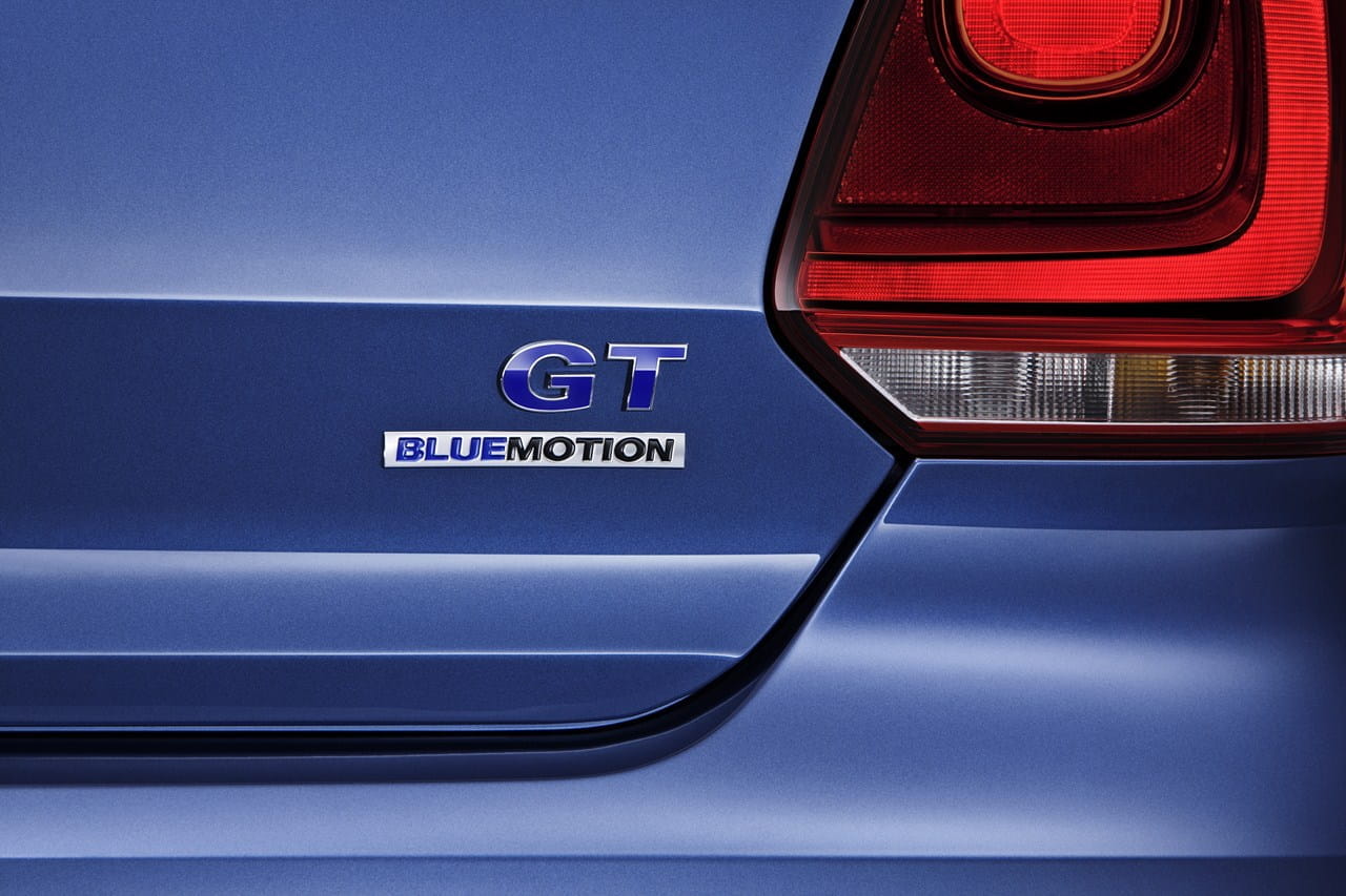 Exteriormente, cuenta con detalles específicos de la mano de un nuevo juego de llantas en 17 pulgadas, emblemas con la denominación GT, un embellecedor del tubo de escape y una amalgama de elementos del Polo Bluemotion y del GTI entre las que encontramos el alerón, paragolpes y ópticas antinieblas y diurnas de la versión más prestacional y estriberas del Bluemotion, poniendo la guinda a esta combinación con una parrilla y retrovisores acabados en negro junto a una reducción de la altura en 15 milímetros.
