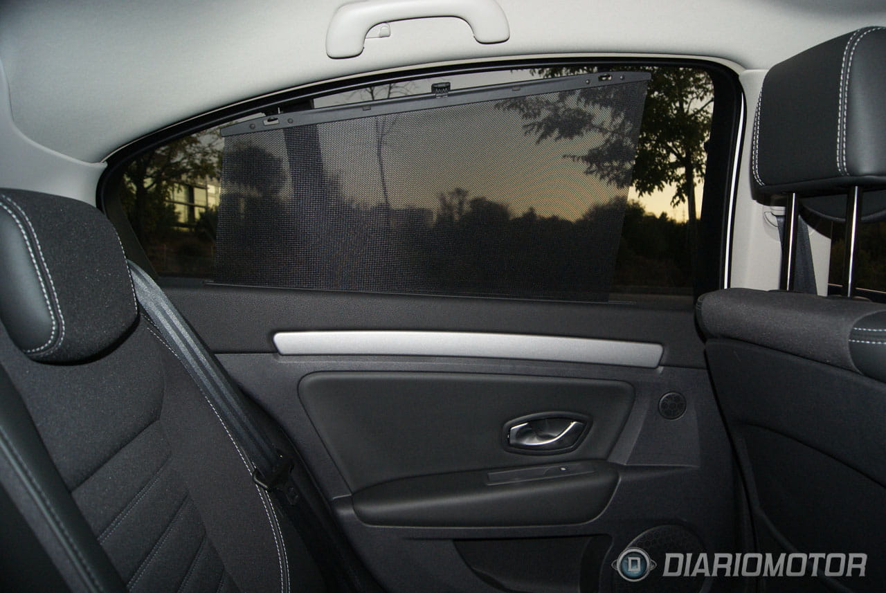 En el centro encontramos una bandeja plegable con espacio para hasta tres bebidas. Esta bandeja no se puede quitar del todo (portaesquís). En la consola central encontramos una toma de 12V junto con las tomas de salida del climatizador y un cenicero plegable. Como detalle, en las puertas traseras encontramos una cortinilla plegable que se puede enganchar en la parte superior de la ventanilla.