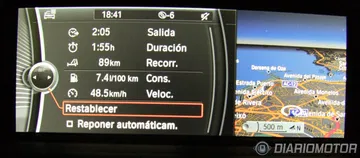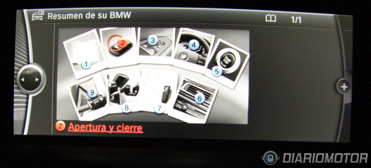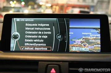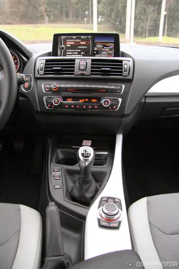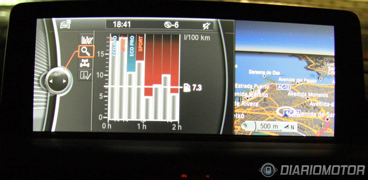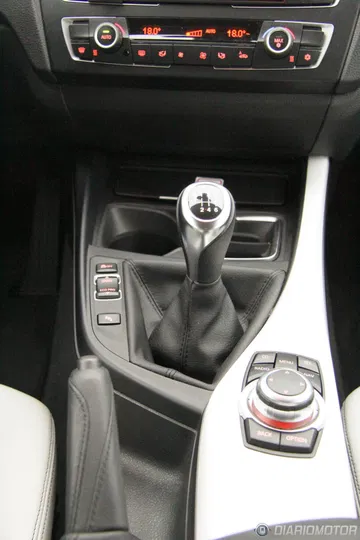 El iDrive, mando principal para controlar los elementos de navegación y multimedia, queda a la derecha de la palanca de cambio. Es sencillo cogerlo pero queda algo alejado si queremos volver al volante de forma rápida. Es decir, queda más cerca el freno de mano que el iDrive. Al lado de la palanca de cambio encontramos cuatro botones: DSC (control de tracción), cambio entre modos de conducción (Sport, Eco Pro, Confort) y el sensor de aparcamiento en caso de que lo tenga.