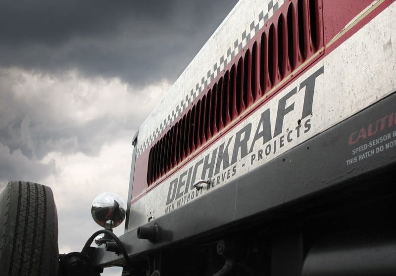 Siempre que veo preparaciones como la que estáis viendo en pantalla, me entran ganas de quitarme el sombrero. No llevo sombrero, pero si lo llevara lo haría. Hay algo de locura, mezclada con genio mecánico y una actitud de lo más socarrona. Lo que un grupo de alemanes locos – organizados de manera muy similar al colectivo estadounidense Blastolene – es convertir en un hot rod pesado a un camión Diamond T 980 N20, originalmente destinado al transporte de tanques de combate.