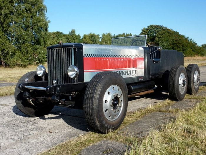 El grupo ha conservado el chasis original, pero han acortado la batalla, acoplando seis ruedas de camión americano al conjunto. El motor está cubierto por un capó de aspecto clásico con ópticas redondeadas, como un hot-rod tradicional también haría. Al encender el motor una humareda gris inunda el ambiente, con un clásico sonido a motor turbodiésel de dos tiempos. Hoy día son motores en claro desuso por razones fundamentalmente medioambientales y prácticas.