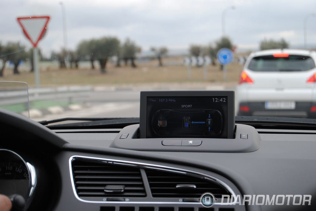 El recorrido se nos va marcando desde otro coche y nos lleva por la zona sur de la comunidad de Madrid, dirección al parque temático Warner Bros. Tras unos metros en población, donde hemos podido ver la cómoda respuesta del modo eléctrico encendemos el climatizador y enseguida el motor térmico se pone en marcha. En su interior se filtra el sonido del bloque diésel, al mismo nivel que cualquier de los otros modelos de la firma como el 508 o el 308, no es molesto, pero tampoco tiene una insonorización destacable. Las plazas tanto delanteras como traseras tienen un buen espacio y son cómodas.