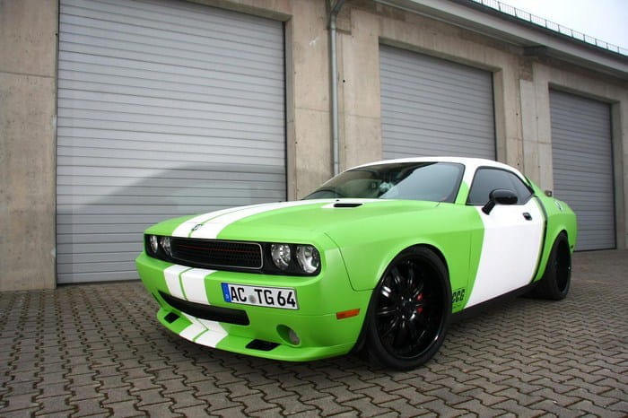 El preparador alemán CCG Automotive se ha propuesto dejarnos con un Dodge Challenger lo menos discreto posible y qué mejor fórmula para tal efecto que pintar la carrocería a un Challenger SRT8, que ya se encargaría de llamar la atención por si sólo por muy discreta que fuera su pintura, dándole ahora una tonalidad verde contrastada por dos líneas blancas y otros detalles en este mismo color.