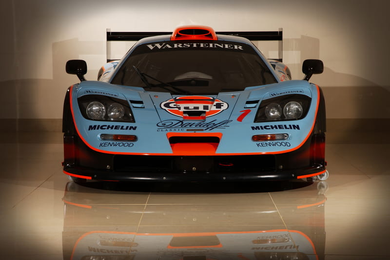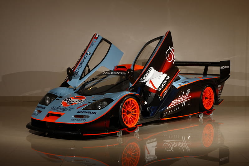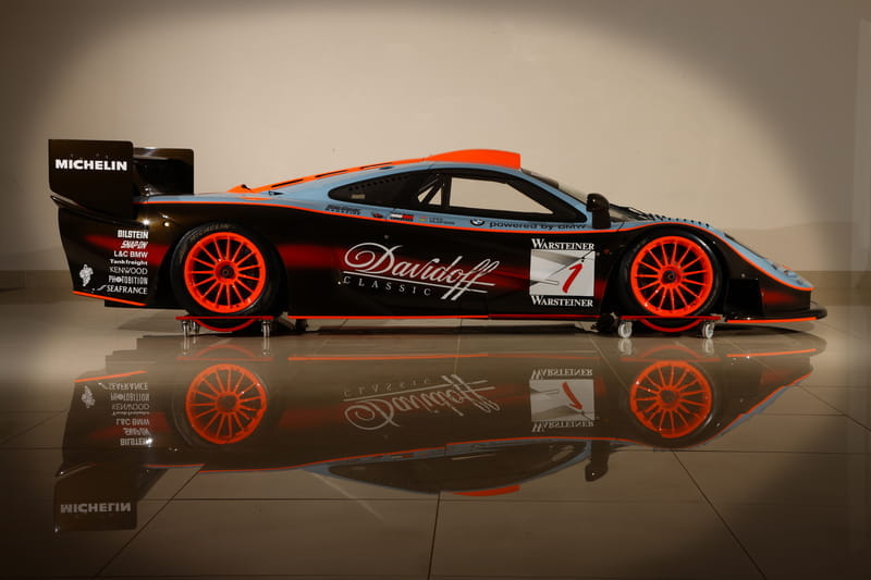 No podía ser de otra forma, puesto que estamos hablando del último McLaren F1 GTR producido, allá por 1997. Sólo se produjeron 28 unidades con especificación GTR del McLaren F1, uno de los superdeportivos más rápidos e impactantes de todos los tiempos. Con número de chasis 028R, esta unidad fue puesta en pista por el Gulf Team Davidoff, como bien habla por sí misma su decoración, y además cuenta en sus características el hecho de ser “Longtail”, con una parte trasera rediseñada y un alerón más grande para mejorar la aerodinámica y aumentar el agarre de los neumáticos traseros.