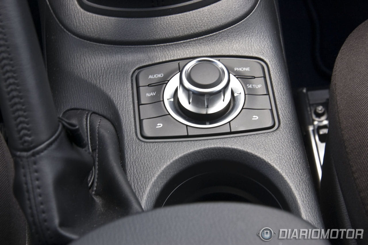 Tanto las indicaciones del navegador como el manejo del sistema multimedia se pueden llevar a cabo mediante la pantalla táctil, los botones y sendos selectores giratorios que circundan la pantalla y una tercera interfaz giratoria situada bajo la palanca de cambios y al alcance de nuestra mano si apoyamos el brazo en el reposabrazos, muy parecida a las soluciones empleadas por fabricantes como Audi o BMW.