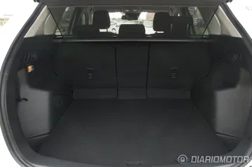La fila de asientos posterior no cuenta con asientos regulables longitudinalmente pero sí con lo que Mazda ha definido como asientos Karakuri abatibles. Se trata de una disposición de respaldos que con una acción tan rápida y sencilla como tirar de una palanca (existe una tras el respaldo y otra en las paredes del maletero) nos permite abatir los asientos en tres piezas 40:20:40 para aumentar el espacio de carga del maletero, formando además un suelo plano. De esta forma el espacio de carga del maletero puede aumentar desde los 500 litros hasta los 1.620 litros.