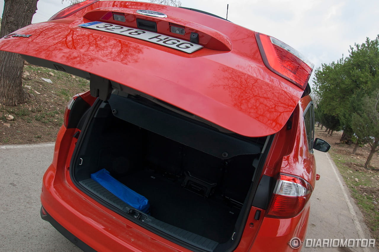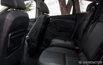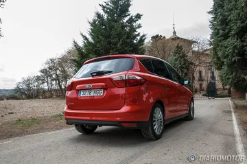 Las plazas traseras son muy cómodas, pero como viene siendo habitual no lo son tanto cuando viajan tres pasajeros, dado que la plaza central tiene la base un poco alta y el respaldo no tan mullido. Como su predecesor el nuevo Ford C-MAX sigue manteniendo otra de las marcas de la casa, sus tres asientos posteriores independientes. Sin duda este detalle supone una gran ventaja y un punto a su favor en cuanto habitabilidad y no sólo por el hecho de que los respaldos puedan abatirse en tres piezas 40:20:40 para aumentar el espacio de carga del maletero.